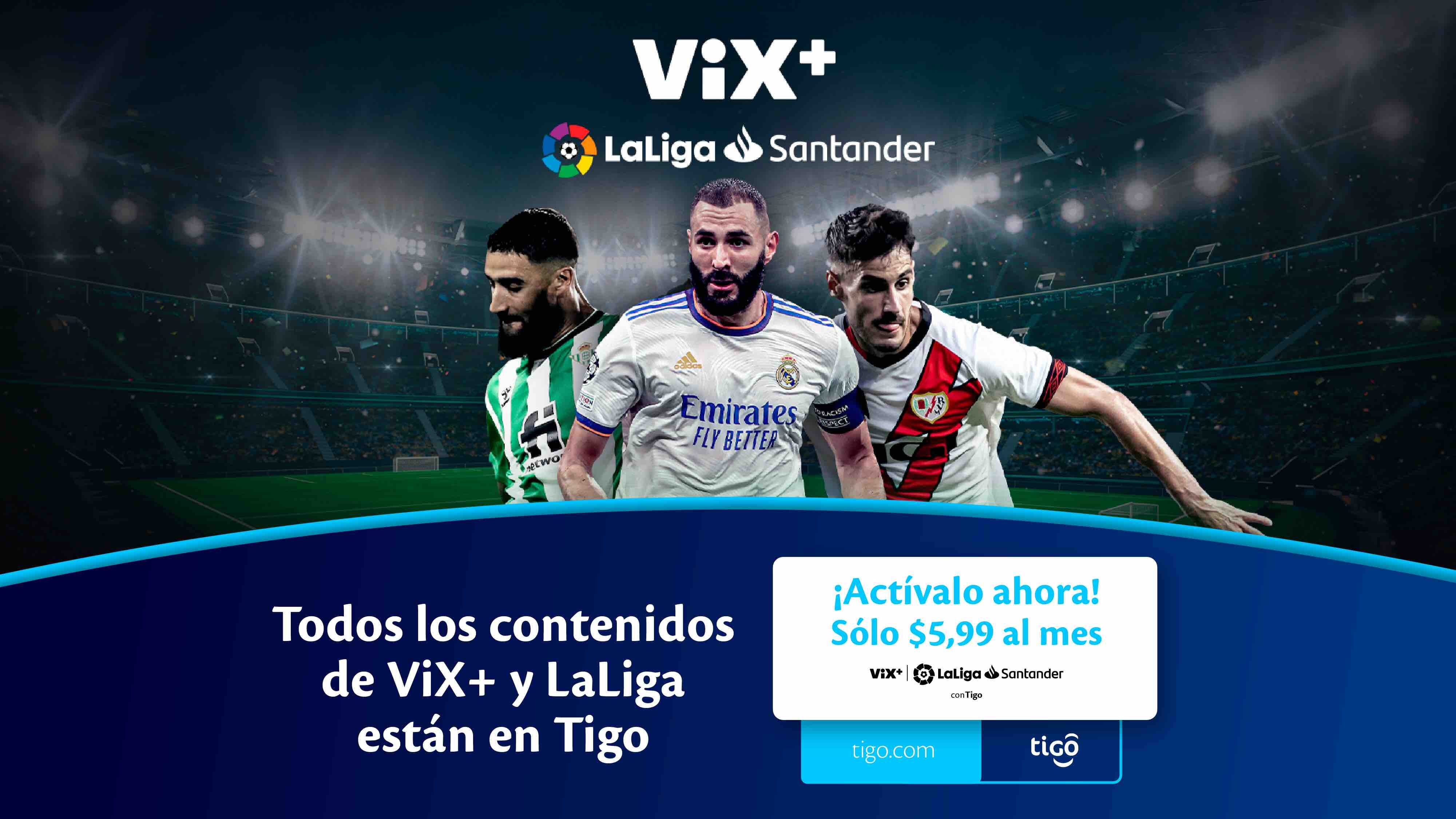 Desde el mes de septiembre, los usuarios de TIGO podrán acceder a más de 50.000 horas de contenido premium por medio de la plataforma ViX+. Por tan solo $5.99 al mes, los suscriptores disfrutarán de los mejores contenidos en español en entretenimiento y deporte, a través de su TV TIGO. Entre estos, los partidos de la Liga Española en HD.