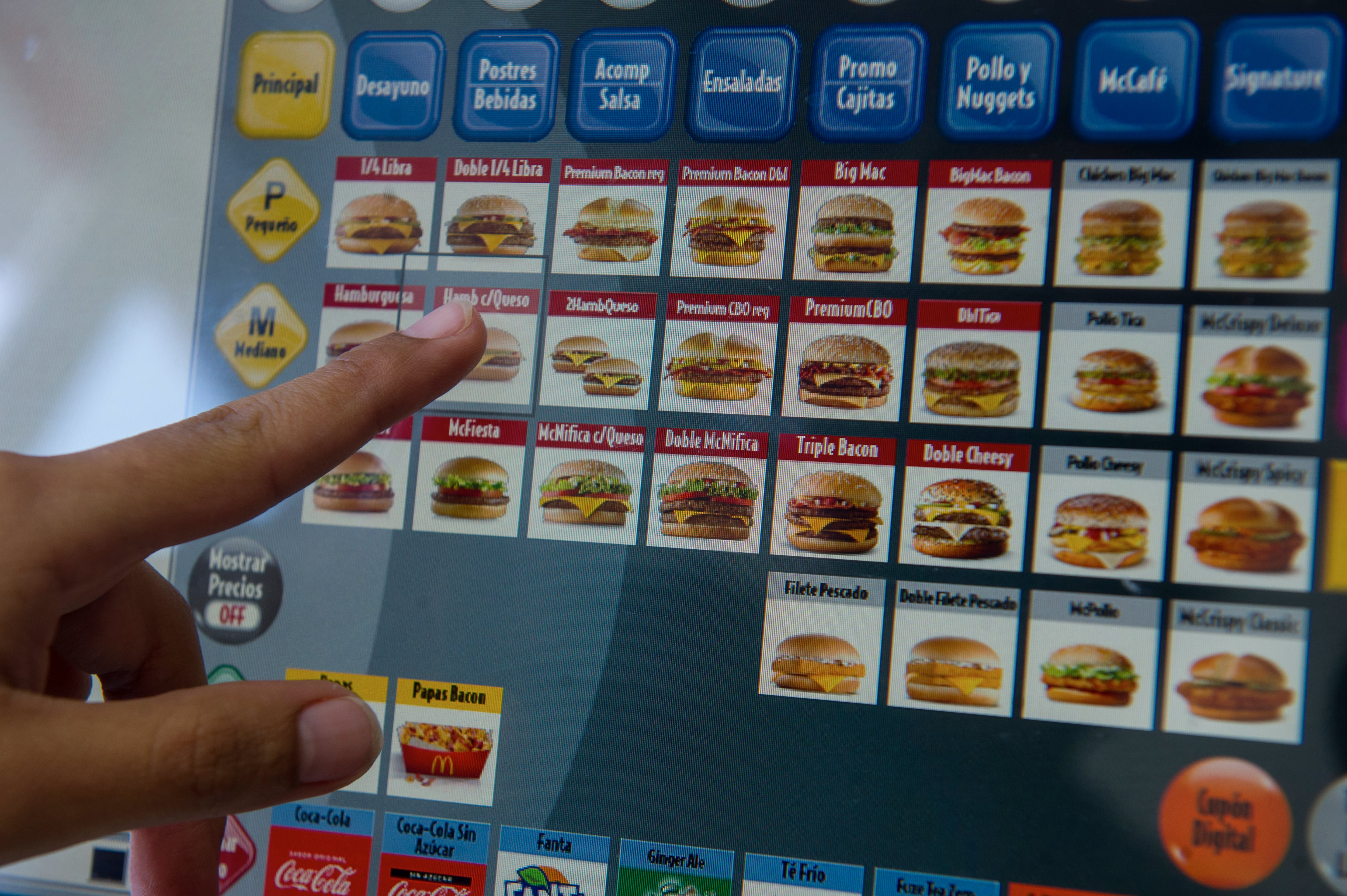 Trigueros, por supuesto, siempre está atento a que todo salga bien desde este servicio. Paola y él revisan en un panel las órdenes. Se trata de un monitor donde aparecen pequeñas postales de cada producto, sea un sundae, un Big Mac o un McFlurry. El proceso de selección de orden es sencillo: es una pantalla táctil y basta tocar sobre la imagen para dejar todo listo.