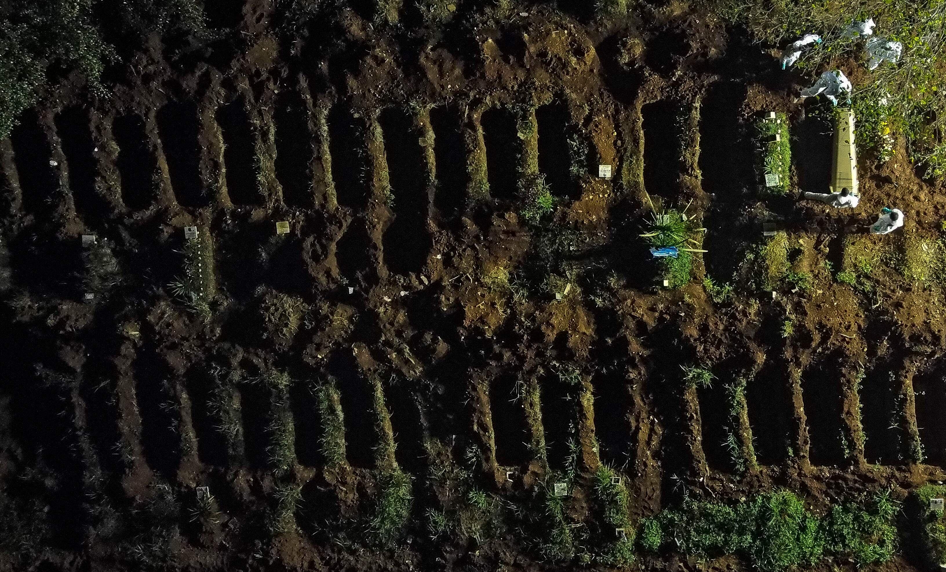 El incremento de muertes está generando escenas difíciles en ciudades como Sao Paulo, la más rica y poblada del país, donde fueron habilitados autobuses escolares para cargar cuerpos y se están realizando entierros nocturnos para atender la demanda.