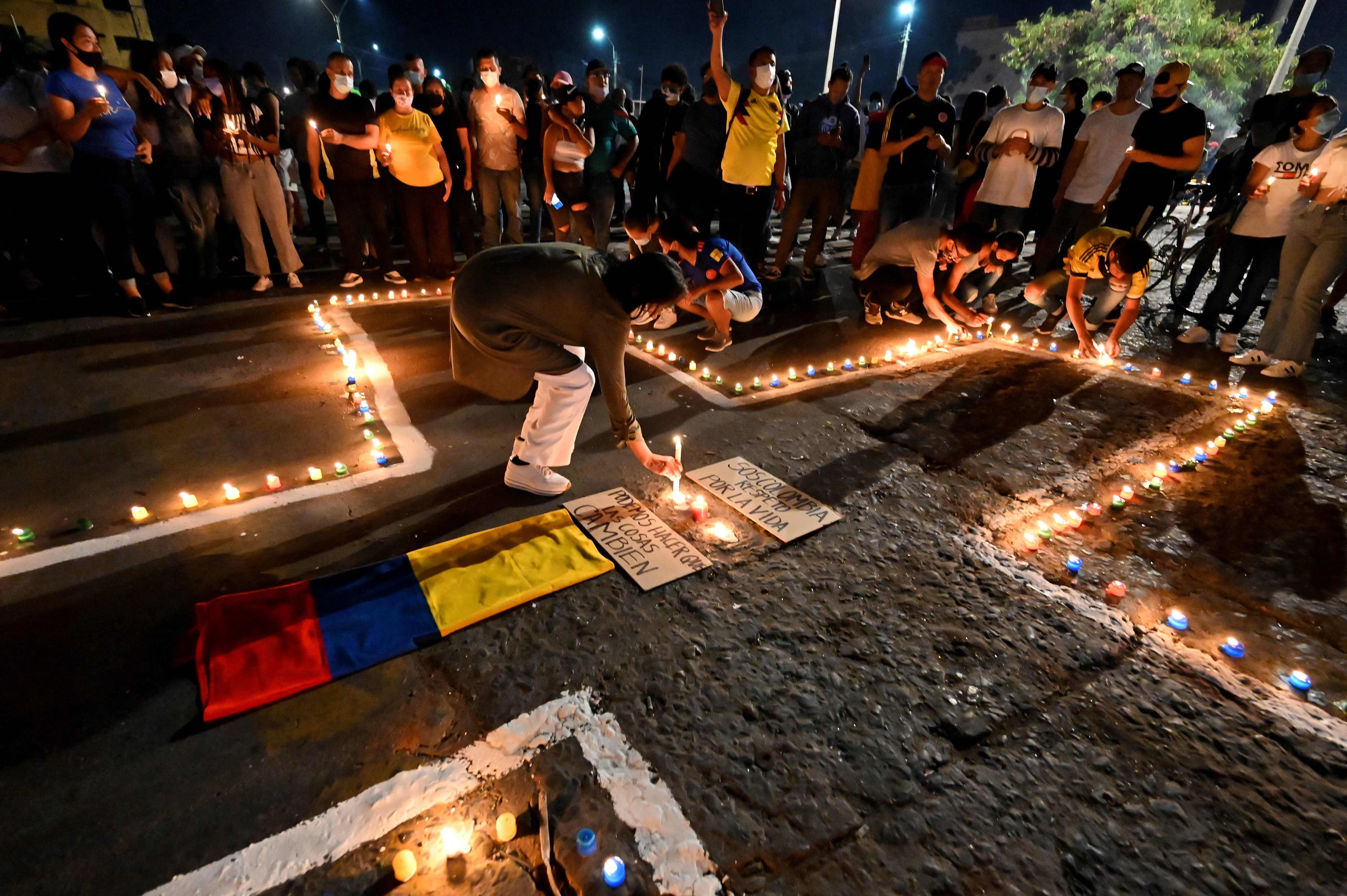 Kevin Agudelo, de 22 años, asistió el lunes a una protesta con velas en Siloé, un barrio marginal de Cali.