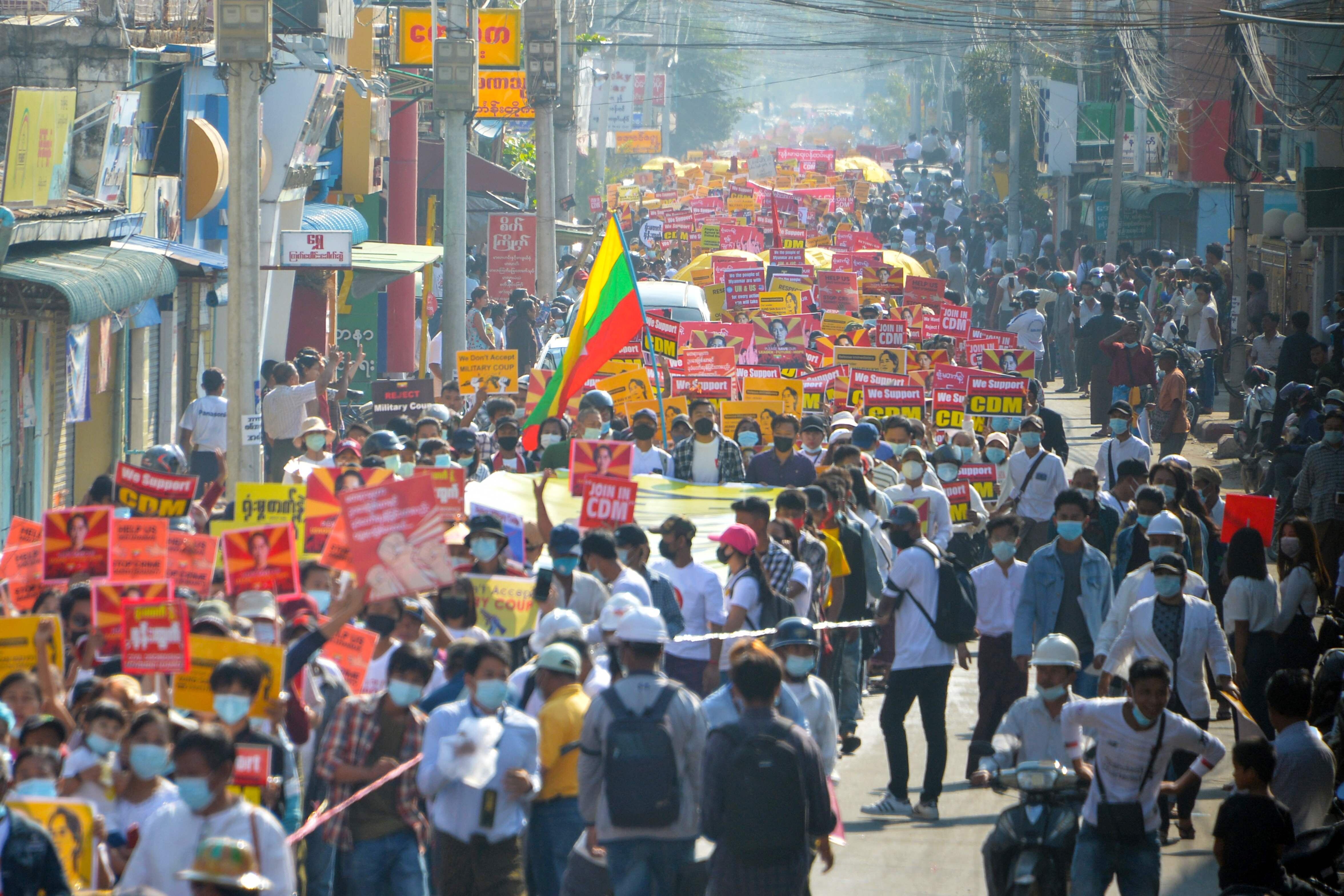 Tres semanas después del golpe del 1.° de febrero, la movilización prodemocracia se mantiene viva, con protestas diarias y una campaña de desobediencia civil que perturba el funcionamiento del Estado y la economía.