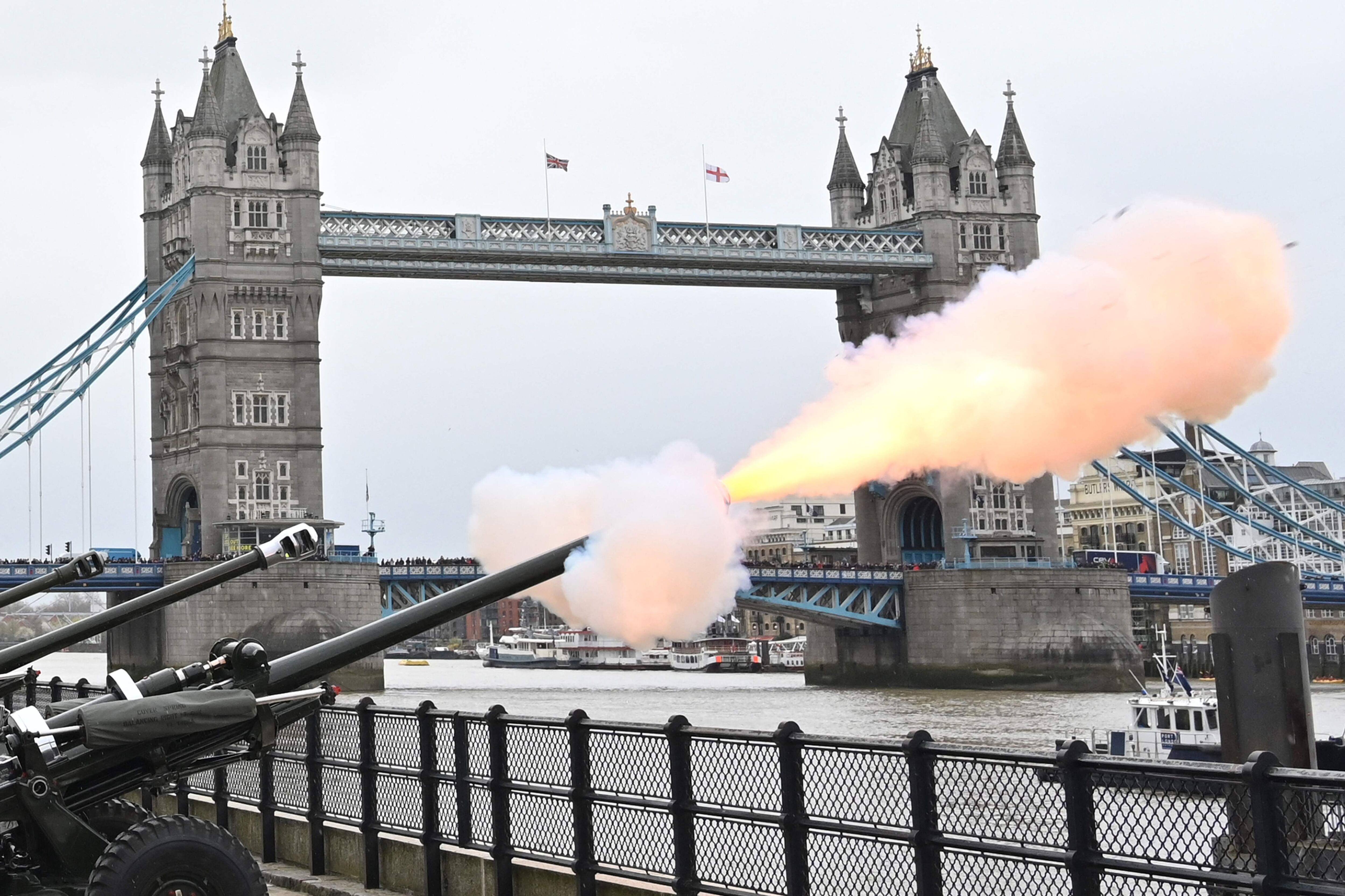 En la Torre de Londres, los curiosos miraron hacia la orilla del Támesis, donde fueron instalados tres cañones, custodiados por militares y por varios “Yeomen”, los emblemáticos guardias vestidos de rojo y amarillo.