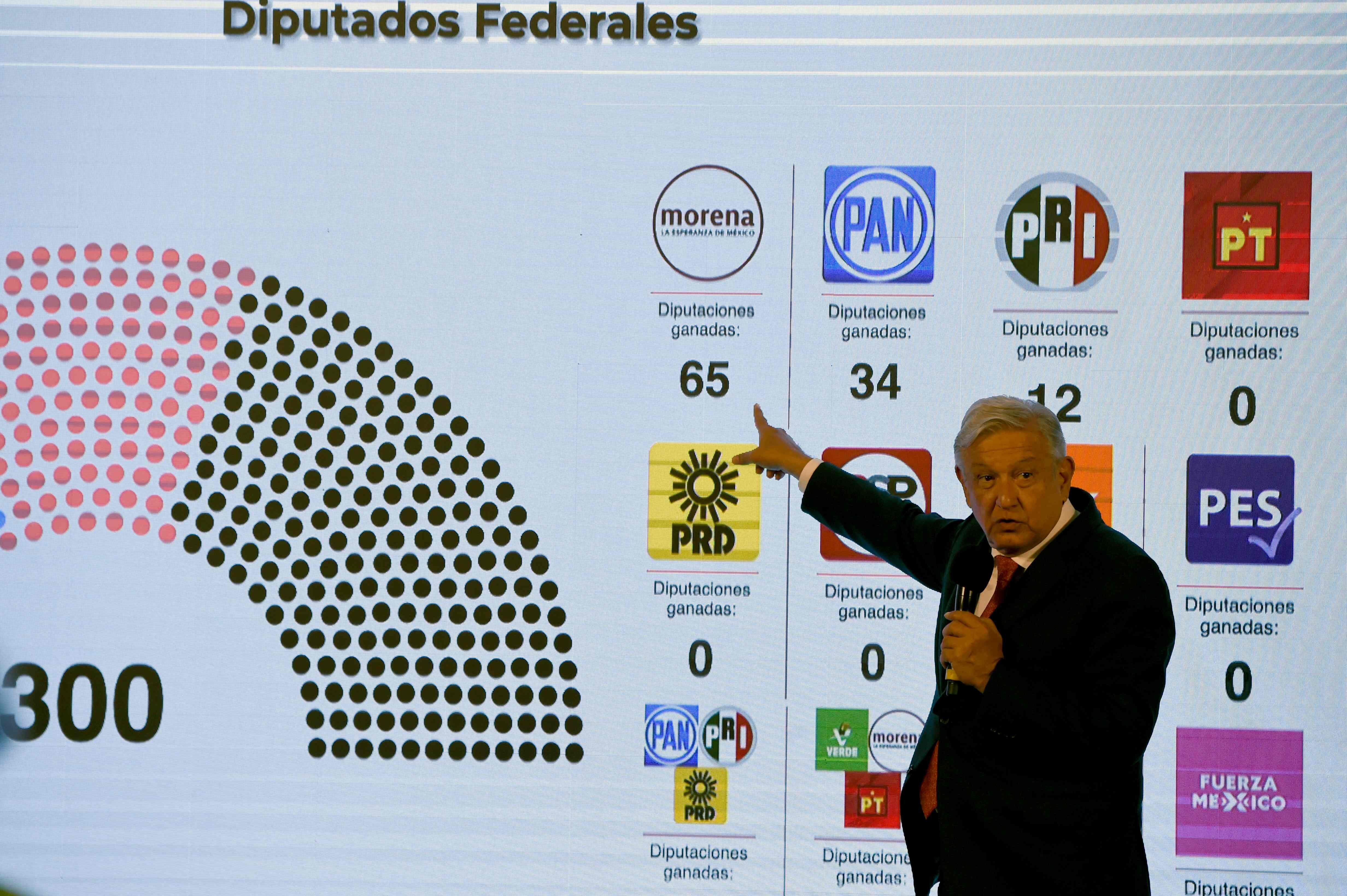 Morena, partido del mandatario izquierdista, perderá la mayoría de 253 diputados que ostenta por sí solo en el cuerpo de 500 legisladores y dependerá de los votos de sus aliados para sumar entre 265 y 298 escaños, según la proyección oficial.