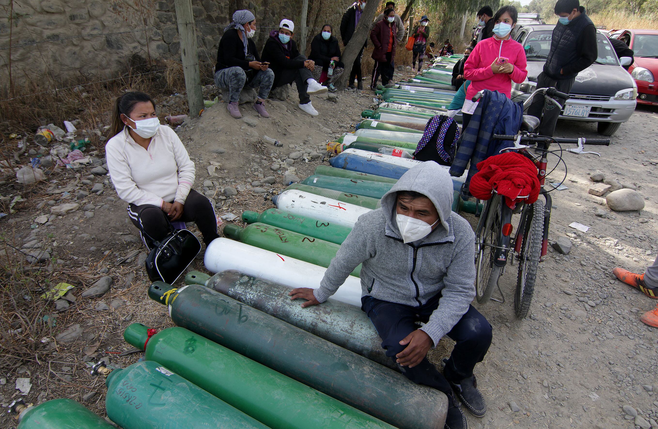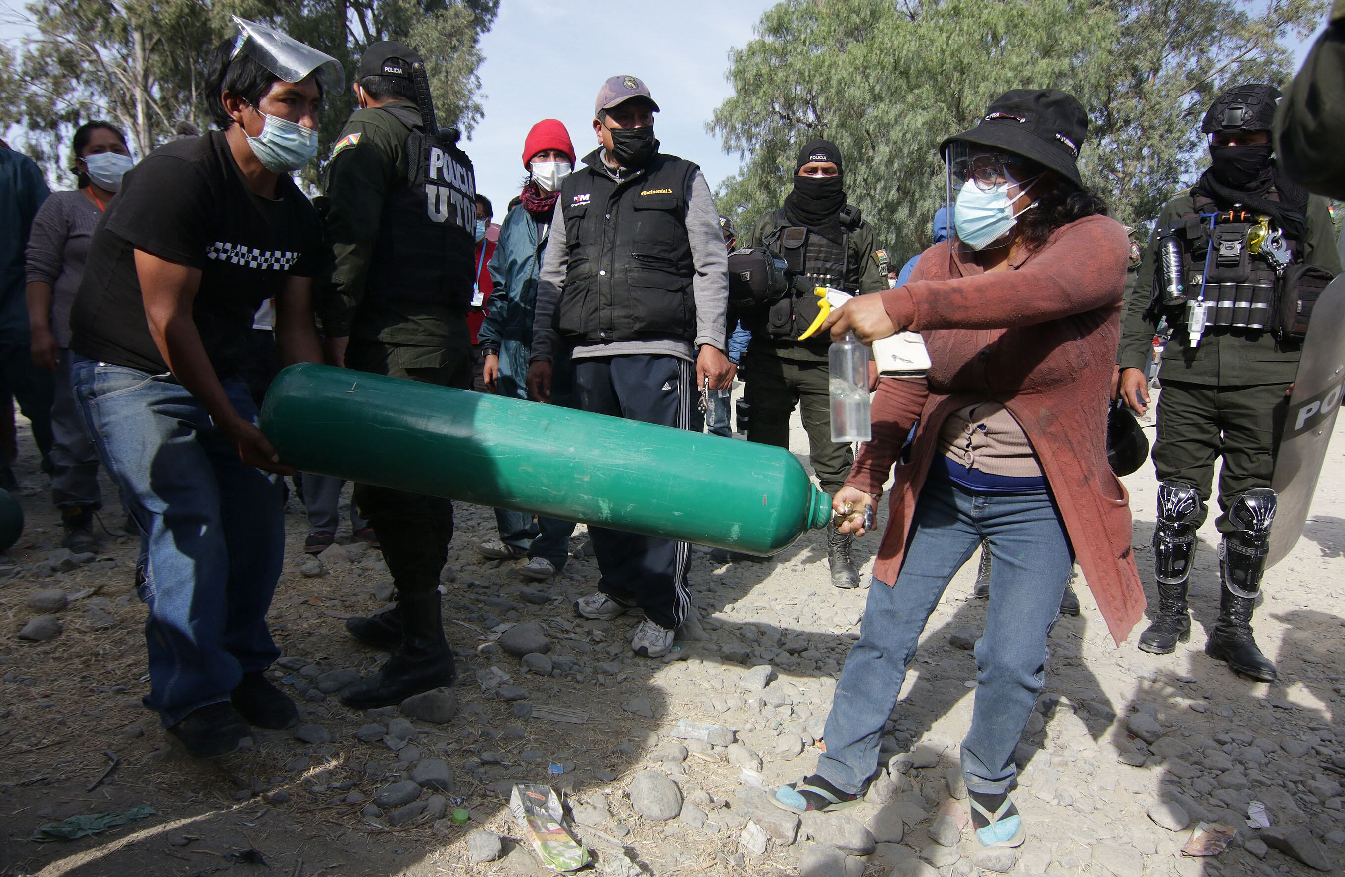 Se escuchan sirenas. La Policía de Arbieto, una localidad cercana a Cochabamba, llega para dispersar una aglomeración. Un tumulto rodea a un hombre de casco blanco que anota los datos de varios a su alrededor. Es un trabajador de la planta de oxígeno de Valle Alto.