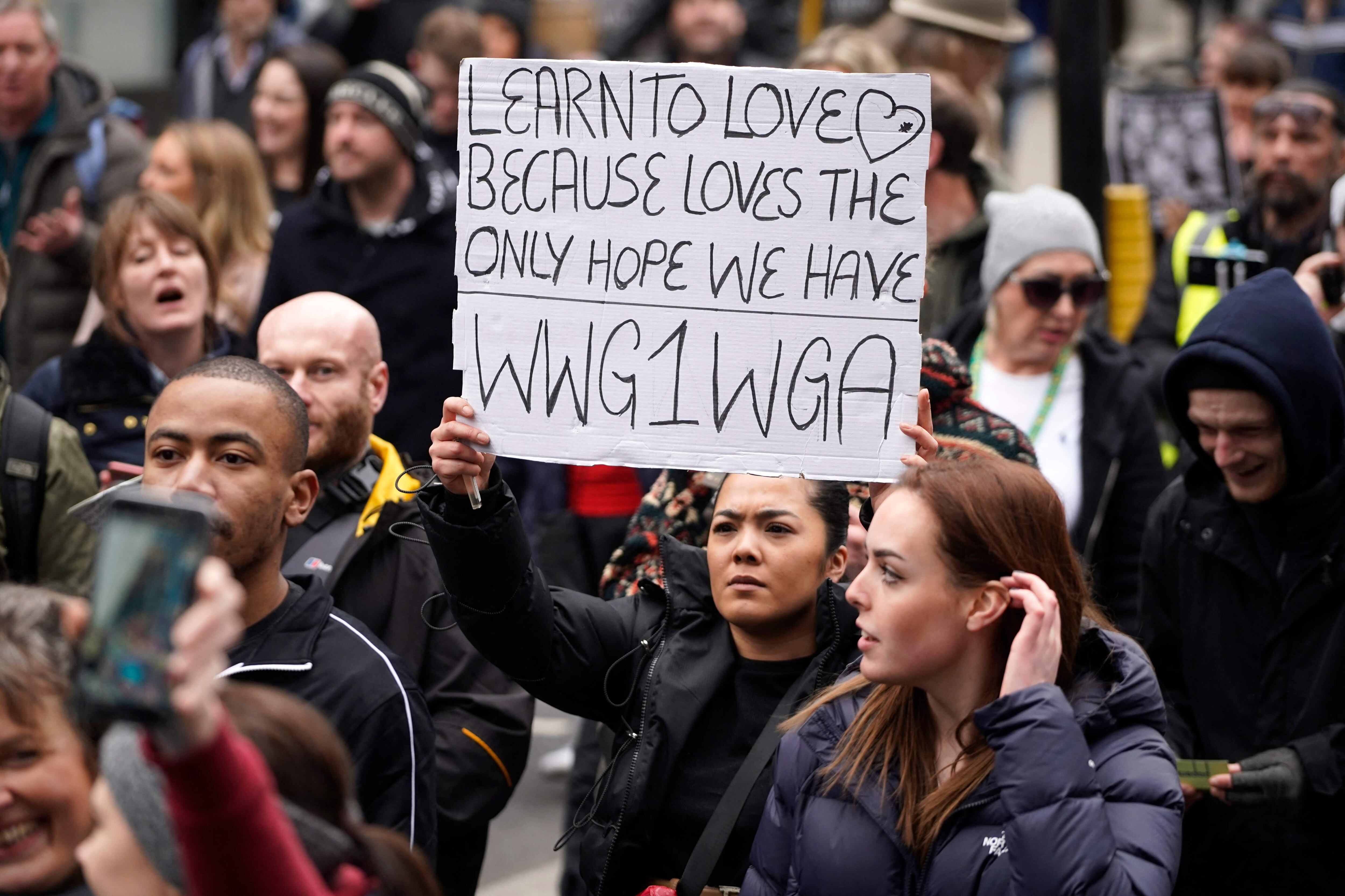 Sin mascarillas en su mayor parte, los manifestantes se reunieron para mostrar su descontento con las medidas aplicadas.