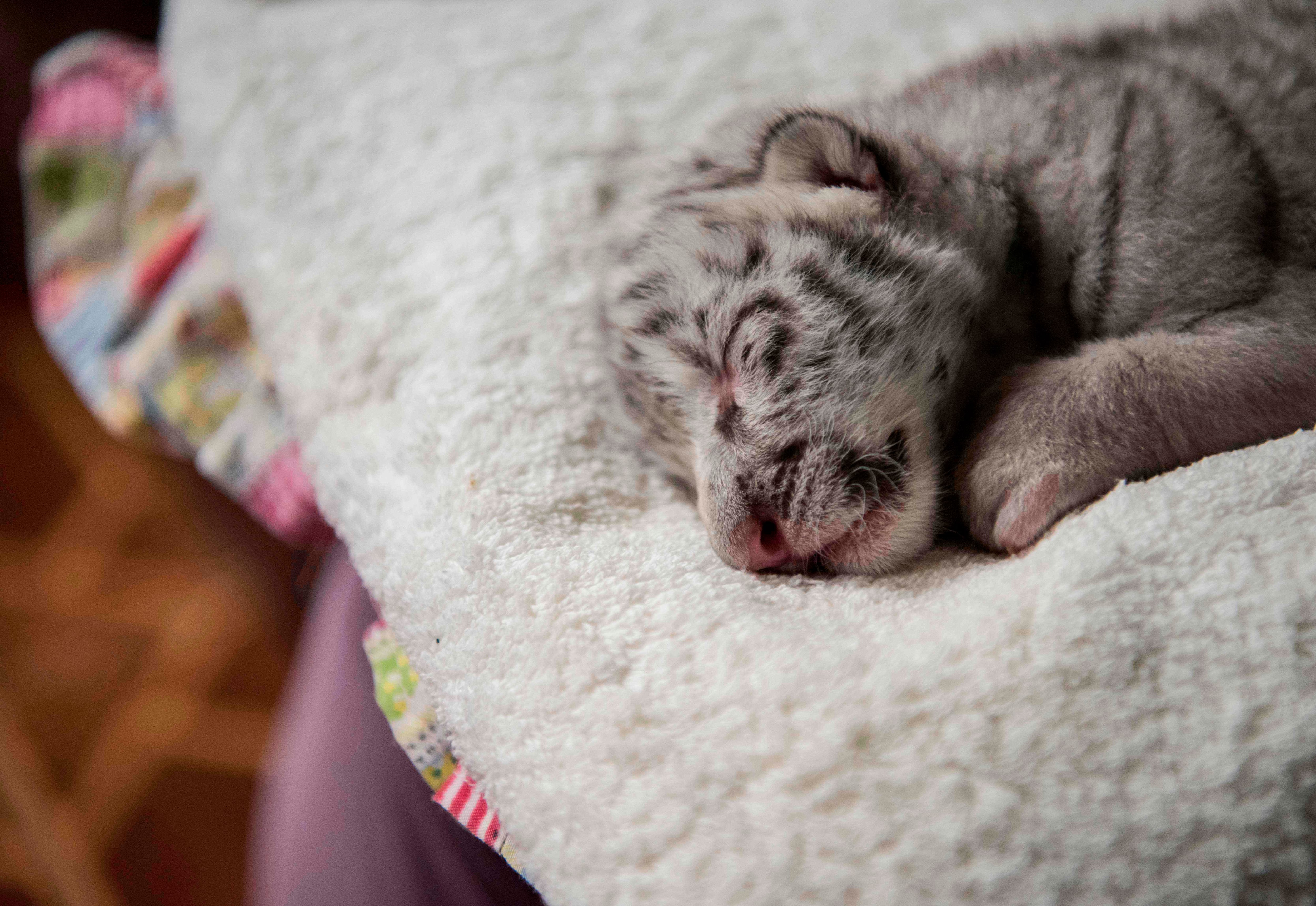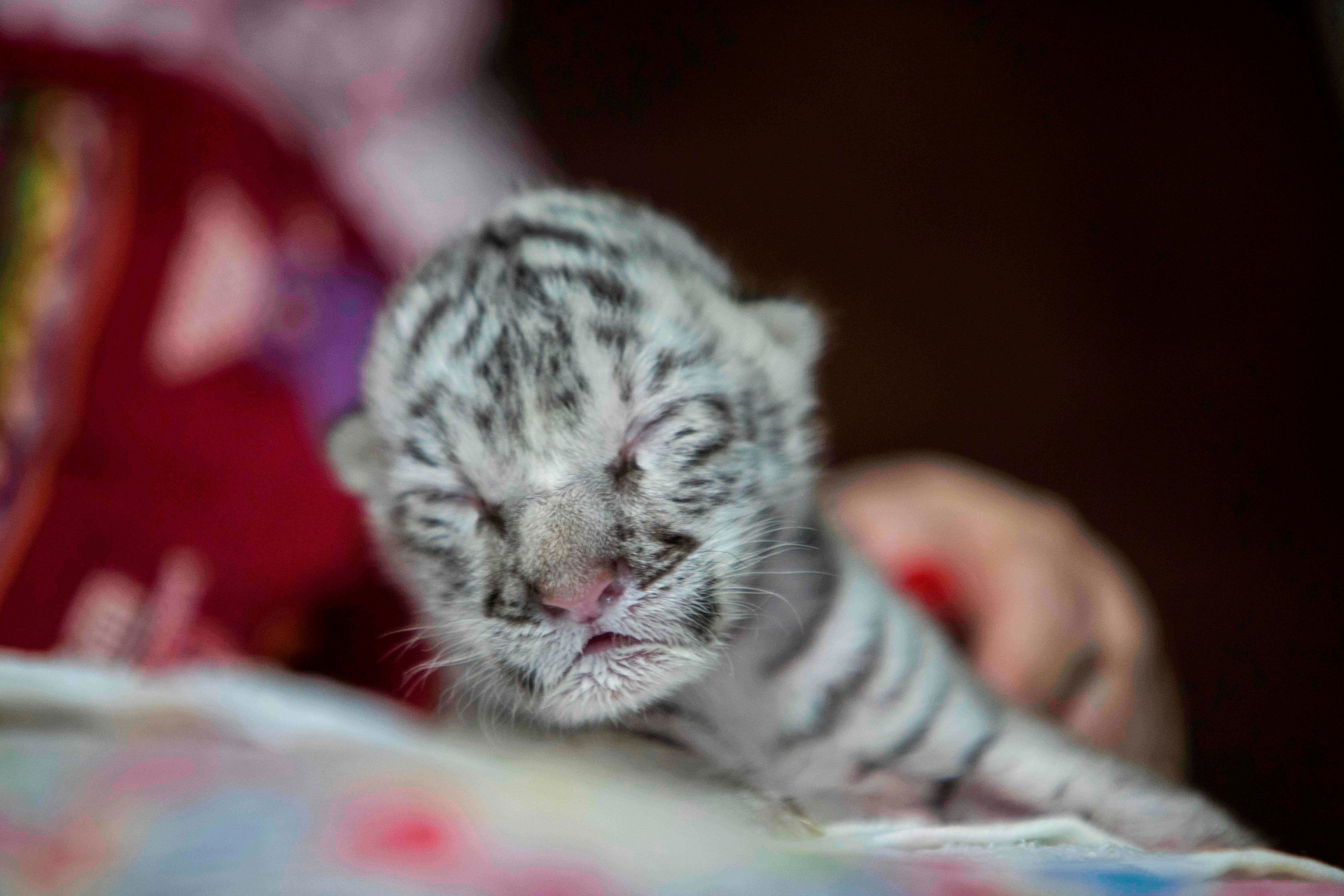 La gestación de una sola cría duró tres meses. “Nieve”, como la han llamado, nació a finales de diciembre 2020, con un peso de 954 gramos, y es hija de dos tigres de Bengala de pelaje amarillo y negro.