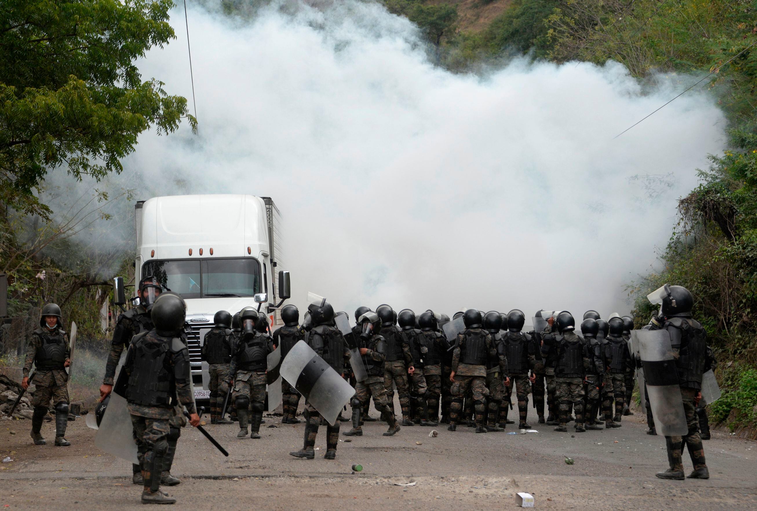 En el desalojo, varios de los caminantes lanzaron piedras a la Policía, que respondió con gas lacrimógeno para seguir alejándolos en dirección a la frontera con Honduras, ubicada a unos 50 kilómetros.
