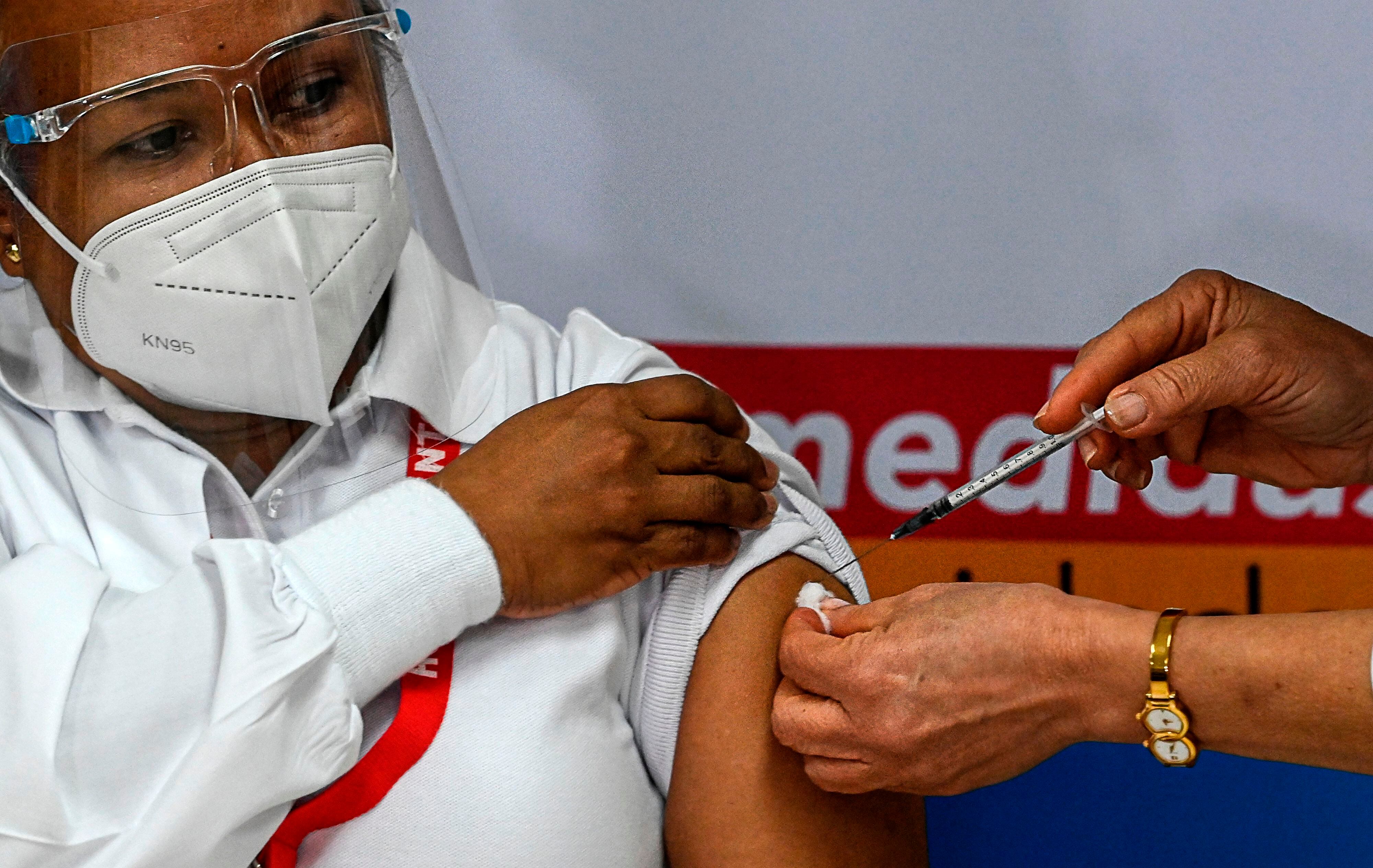 Ciudad de Panamá. Con la vista puesta de reojo en la jeringuilla, la enfermera Violeta Gaona recibió el miércoles en su brazo izquierdo la primera dosis de la vacuna contra la covid-19 en Panamá, que acumula el mayor número de contagios por la pandemia en Centroamérica.