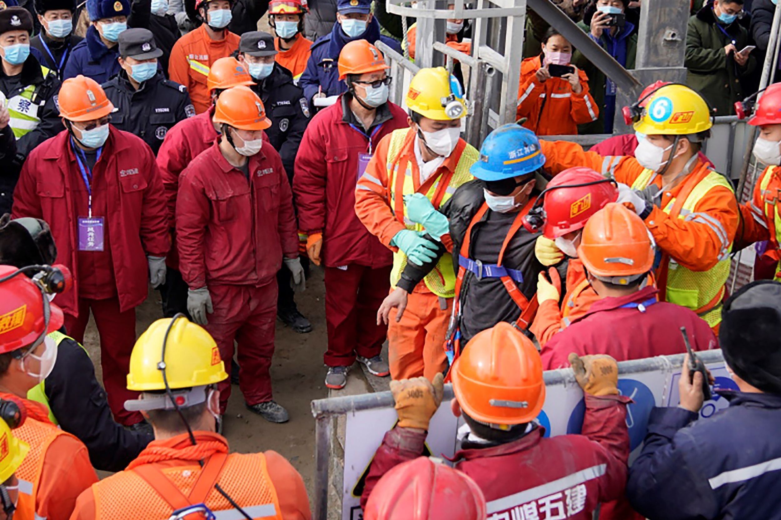 Las imágenes de televisión pública mostraron inicialmente este domingo cómo una enorme perforadora subía a la superficie una carretilla con socorristas y un hombre con mascarilla, que parecía incapaz de mantenerse de pie.