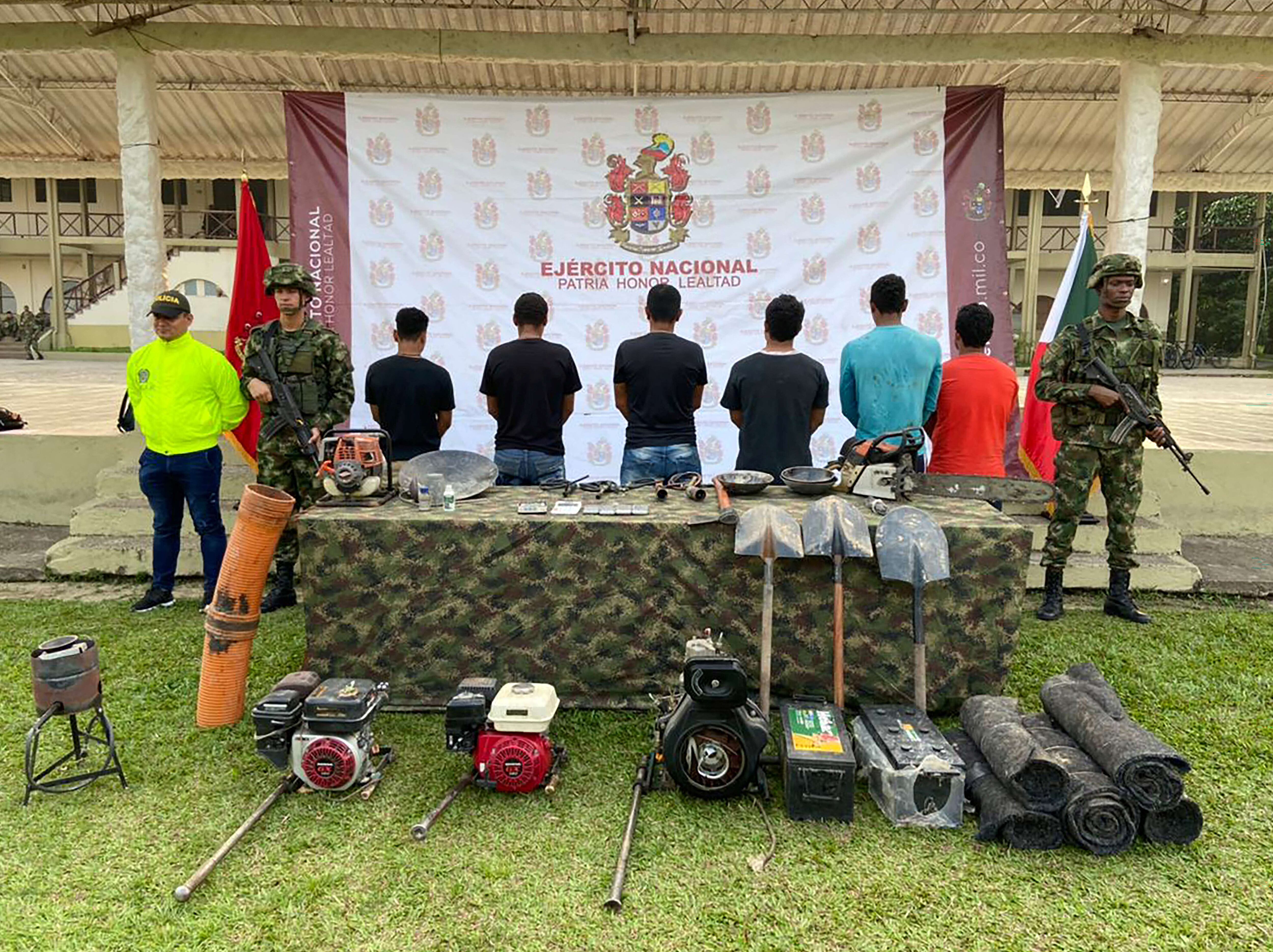 Bogotá. Militares colombianos capturaron a seis brasileños que extraían oro ilegalmente en la selva amazónica mediante el empleo de cuatro dragas que fueron destruidas, según informó el ejército este martes.