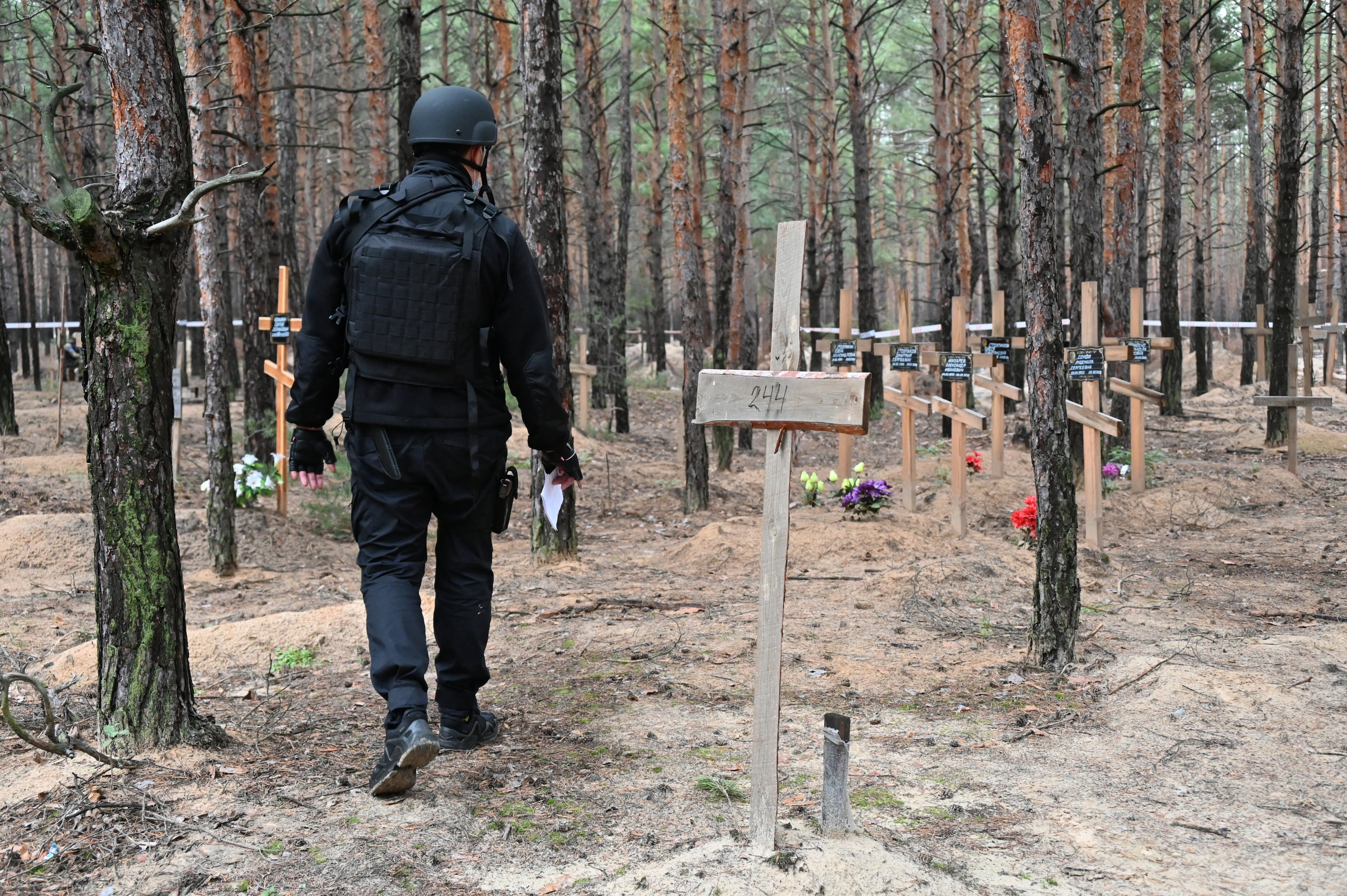 Según las autoridades locales, fueron halladas un total de 450 tumbas en ese bosque y, entre ellas, una fosa con los restos de 17 soldados ucranianos. Uno de los cadáveres fue enterrado con las manos atadas, observó un periodista de la AFP.