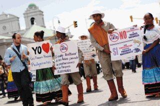 Con pancartas, trajes típicos y gritando consignas, los manifestantes caminaron desde la catedral metropolitana hasta la Asamblea Legislativa.