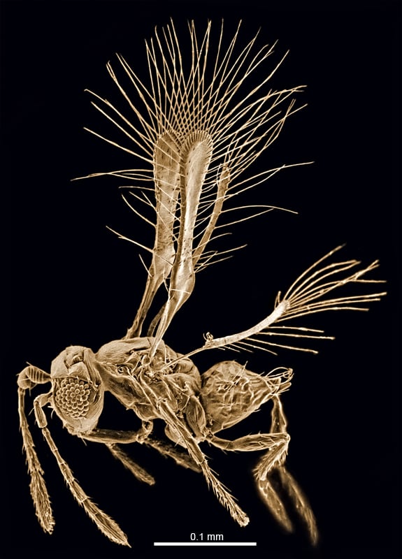 Con tan solo 0,25 milímetros de longitud, delicadas alas con flecos y un cuerpo translúcido, la avispa Tinkerbella nana recuerda a la traviesa hada Campanita del libro infantil Peter Pan .