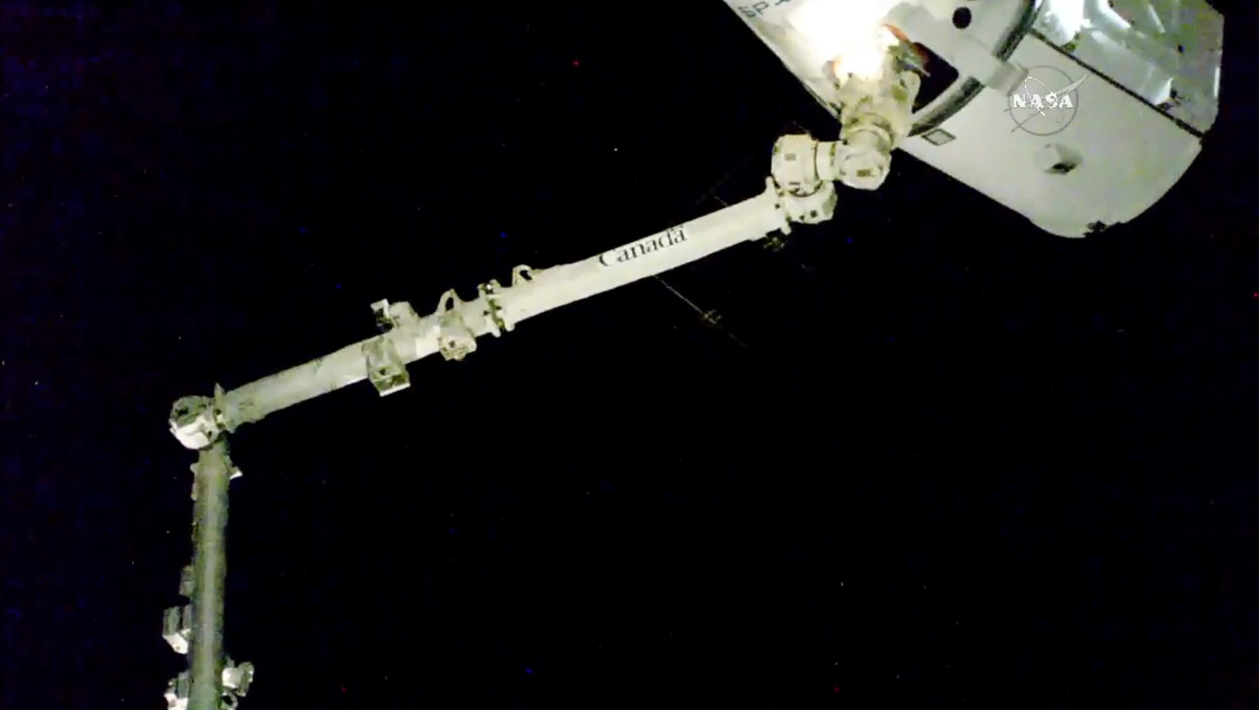 Astronautas de la Administración Nacional de la Aeronáutica y del Espacio (NASA) emplearon el gran brazo robótico de la estación orbital para atrapar la cápsula Dragon, el domingo por la mañana. Es la segunda visita de esta nave de suministros, que ya había realizado una entrega para la agencia espacial estadounidense en 2015.