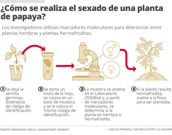 El análisis podría hacerse con la semilla, "pero el riesgo de dañar el embrión es muy alto. Al tratar de cortar un tejido para extraer el ADN, se puede cortar también el embrión ya que la semilla de la papaya es muy pequeña", comentó Barboza.