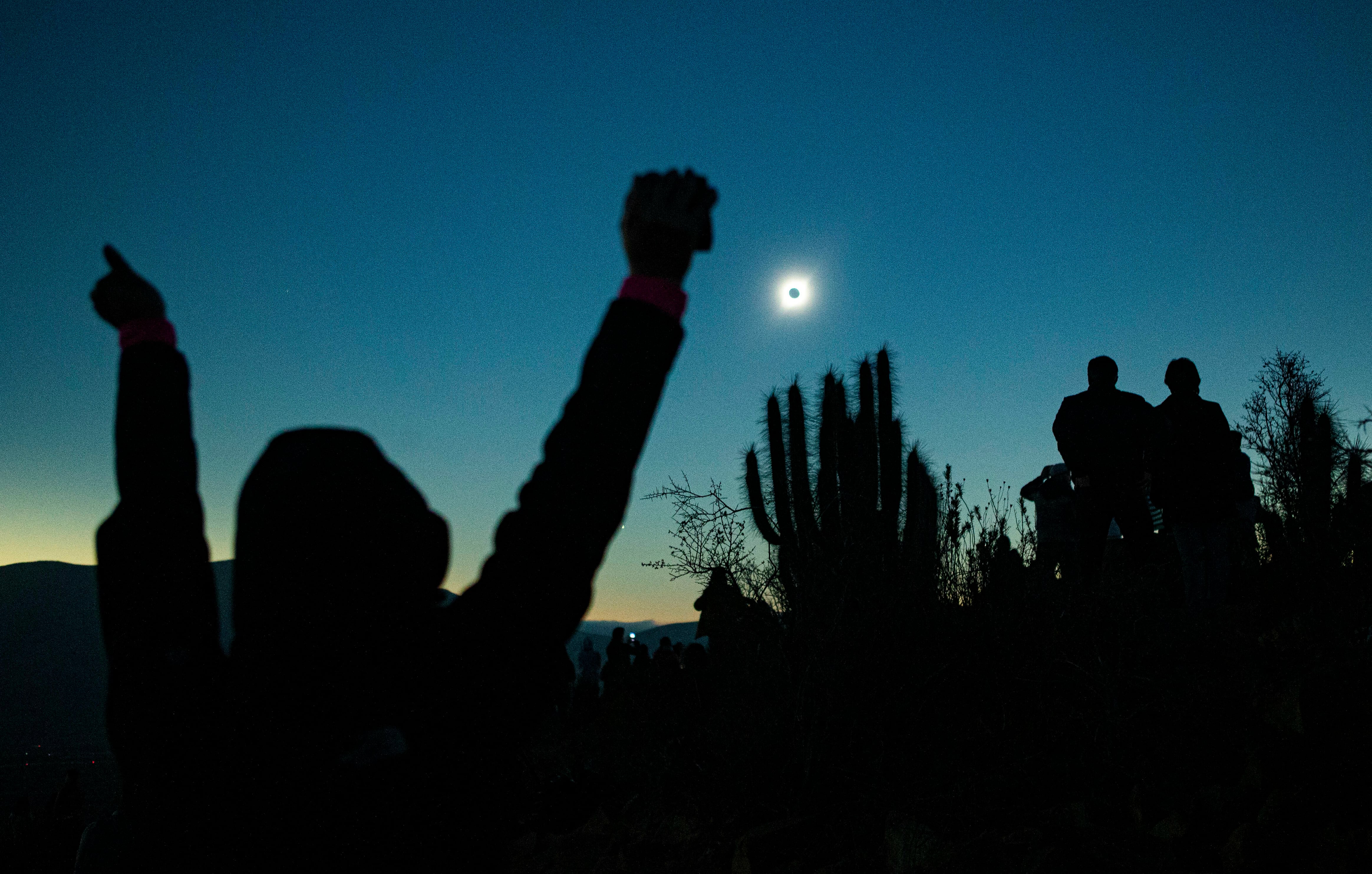 La Serena, Chile. Decenas de miles de personas aplaudieron el eclipse total de Sol que miraron desde localidades del norte de Chile, donde están los cielos más limpios del planeta, y sus gritos crecían a medida que la Luna cubría la estrella por completo.