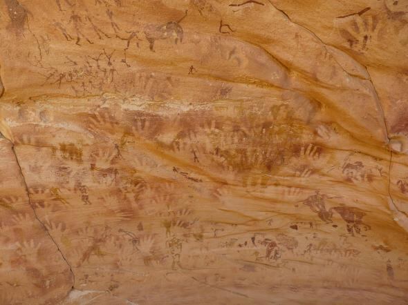 Entre las imágenes que más llaman la atención de los arqueólogos destaca un par de manos –de bebé o de un niño muy pequeño– dentro de las huellas de las manos de un adulto.