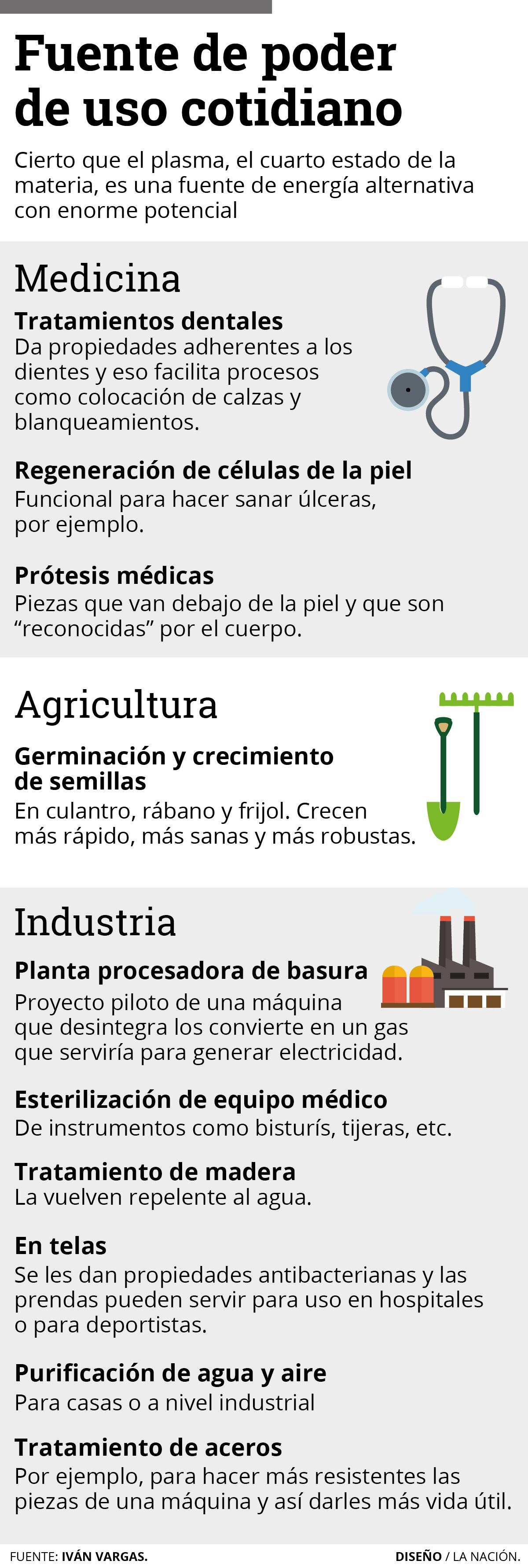 “La gente tiene la idea de que el plasma se usa solo para propulsión espacial, y no es así. Estamos demostrando que se pueden hacer un montón de cosas... Aparte de explorarlo como futura fuente de energía, trabajamos con plasma para los sectores industrial, médico y agrícola”, explicó Vargas.