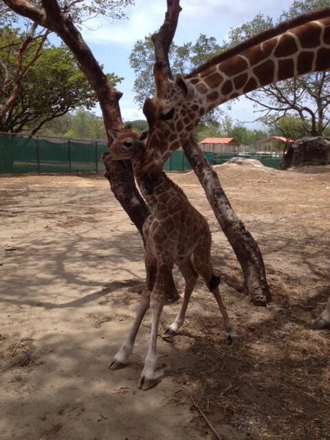 Los embarazos de esta especie suelen durar unos 15 meses y la costumbre en el parque guanacasteco es apartar a las jirafas preñadas del resto de animales, para así evitar que se estresen o se vayan a lastimar, ya que también conviven con cebras, ganado watusi y dromedarios, entre otras especies.