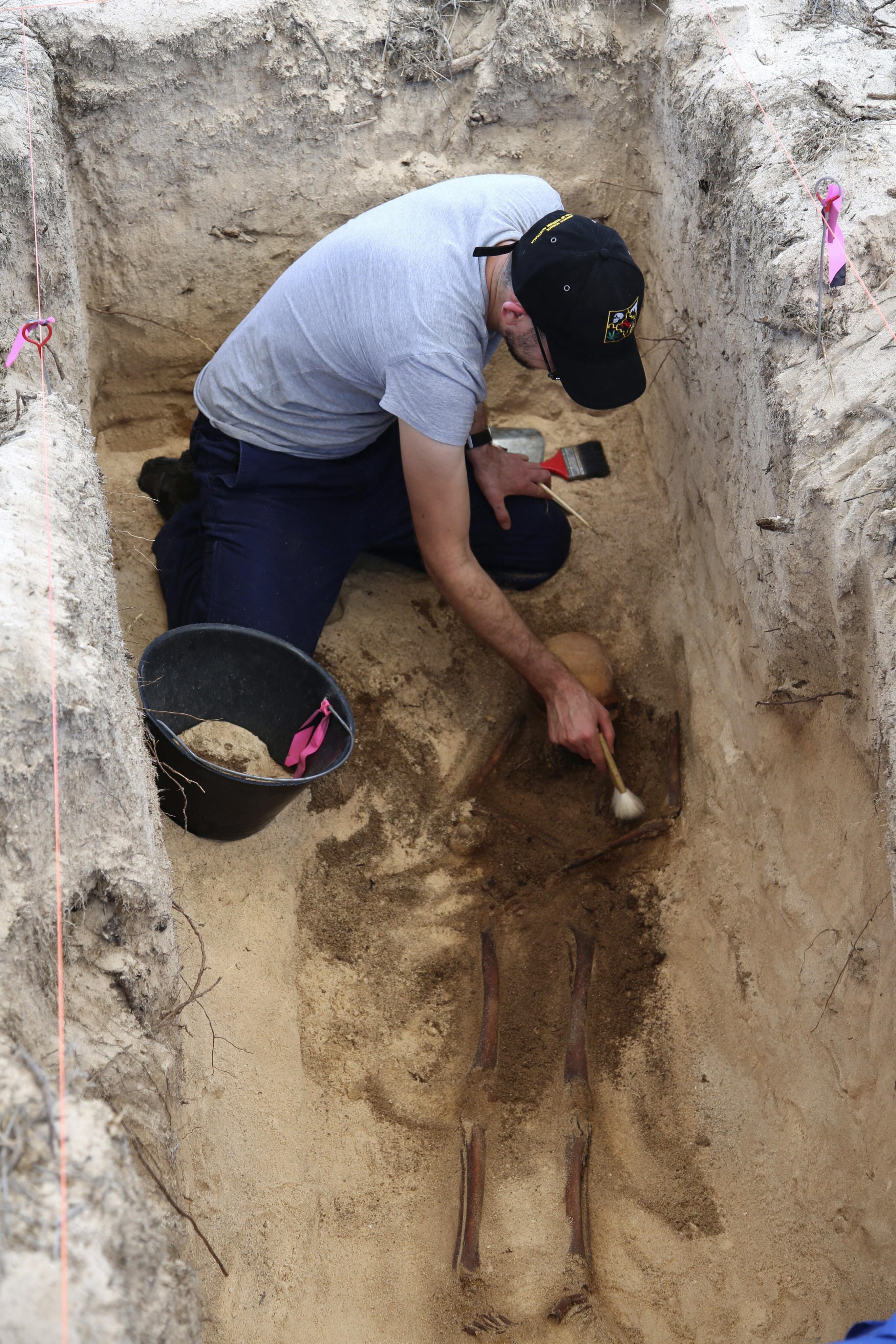 La última víctima, enterrada a metro y medio de profundidad, albergaba entre sus huesos dos balas de mosquete que apunta a una posible ejecución o muerte violenta.