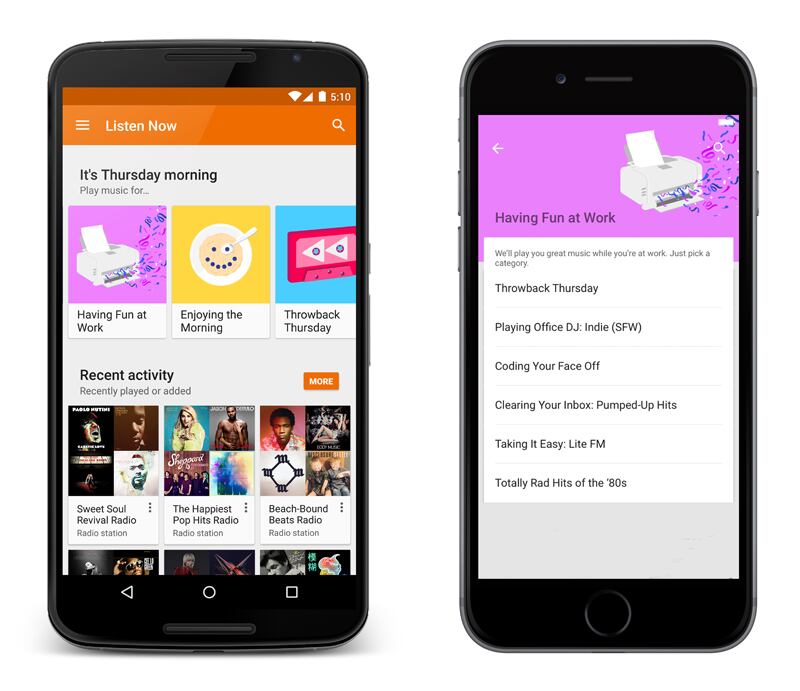 Entre las alternativas musicales que tendrán los usuarios de la nueva estación de radio anunciada por Google, se encuentran listas musicales con piezas aptas para manejar o irse a la cama, para despertar feliz o para divertirse mientras se está en el trabajo.