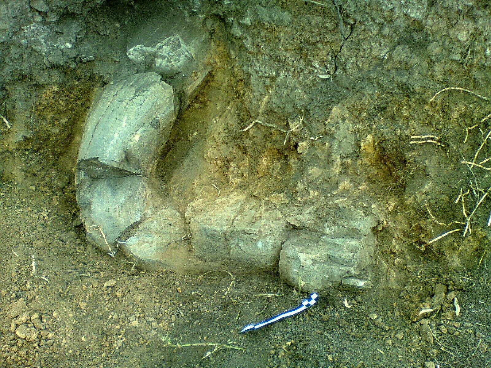 La defensa del animal extinto fue encontrada cubierta con fragmentos de cerámica y restos de cenizas, carbón y algunas semillas carbonizadas, "por lo que se deduce que se trató de una ofrenda que antiguos habitantes de influencia olmeca depositaron durante el periodo Preclásico Medio (1000 - 400 a.C.)" para consagrar el inicio de una construcción, indica un comunicado del INAH.