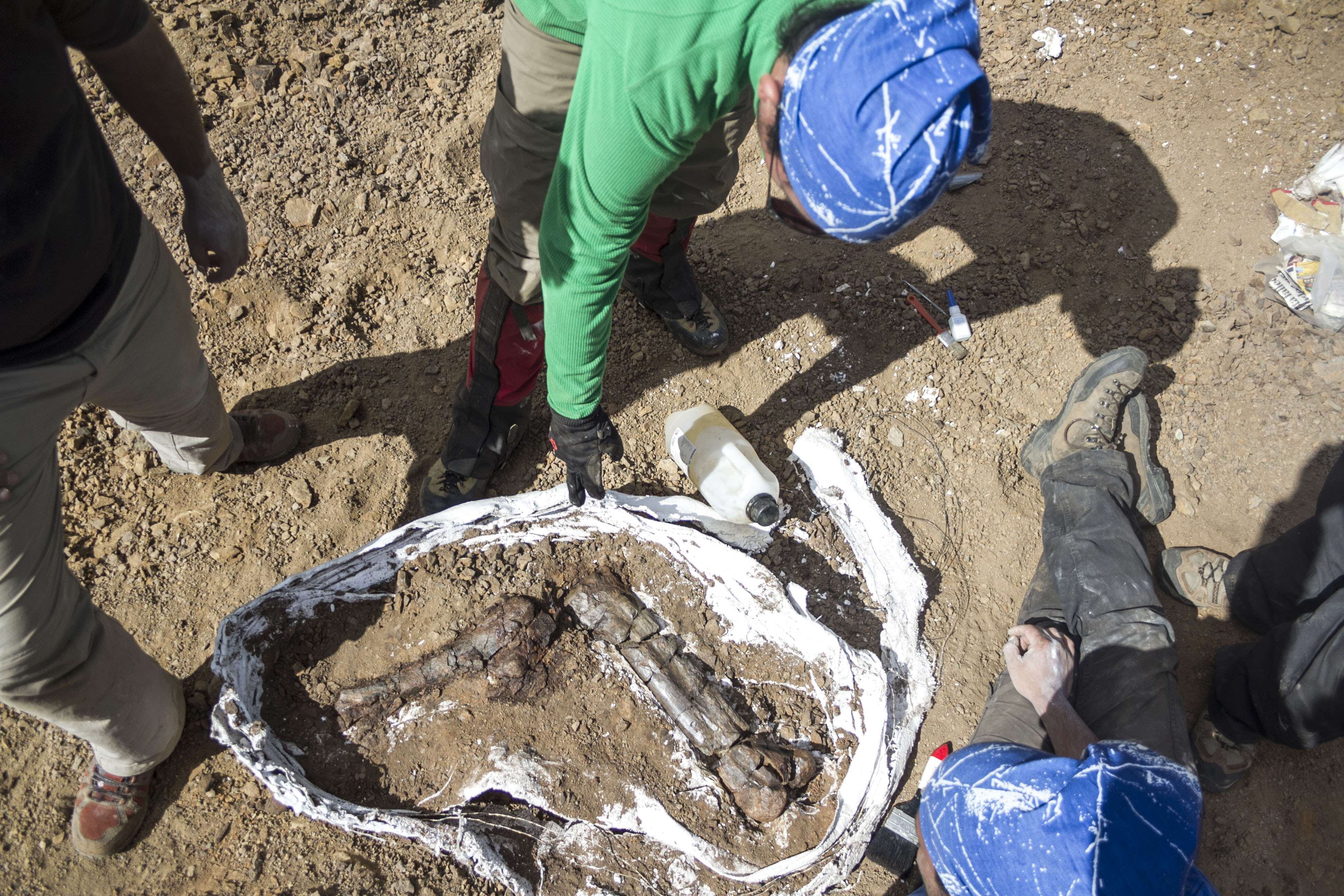 Un equipo de 26 especialistas se adentró en la Patagonia chilena, más de 3.000 km al sur de Santiago, hasta una zona conocida como cerro Guido, donde se ubica un importante yacimiento de restos fósiles, en el que hallaron huesos de dos "saurópodos ".