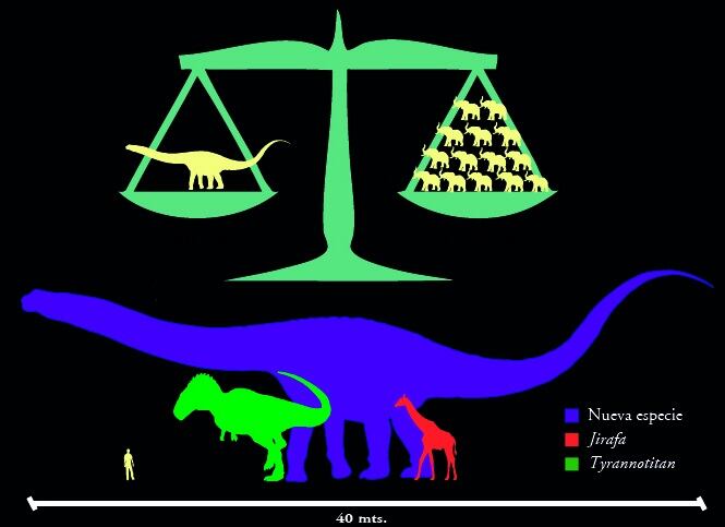 “Es como dos camiones con acoplado, uno detrás de otro, y el peso equivalente a más de 14 elefantes africanos juntos”, dijo José Luis Carballido, especialista en dinosaurios, en el sitio del MEF.