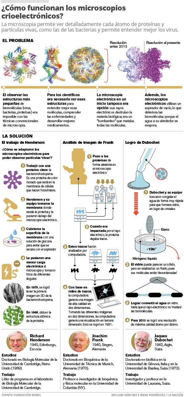 Este tipo de técnica de lentes microscópicos tiene tres "padres", por lo que el Nobel de Química este año se dividió en tres partes iguales para el suizo Jacques Dubochet, el estadounidense Joachim Frank y el escocés Richard Henderson.
