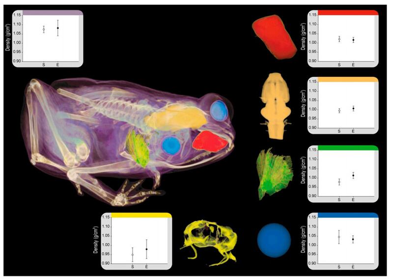 Amplificador. La diminuta rana, que mide máximo un centímetro de largo, no posee oído medio ni tímpano, a diferencia de la mayoría de sus parientes.