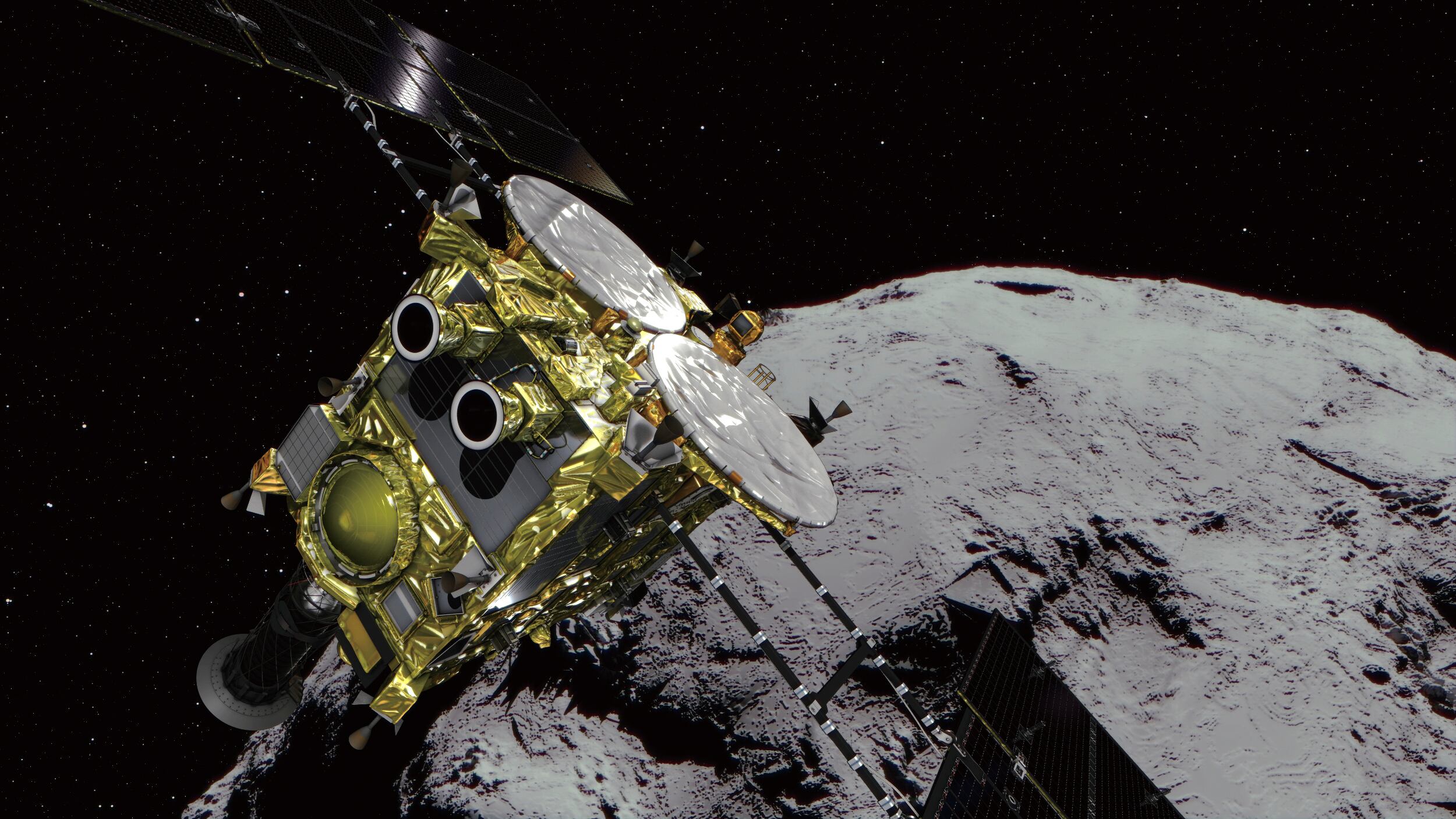 También enviará tres sondas exploradoras que no tienen ruedas, pero pueden saltar sobre la superficie del asteroide para realizar experimentos. Asimismo, enviará un explorador de fabricación franco-alemana con diversos artefactos de observación.