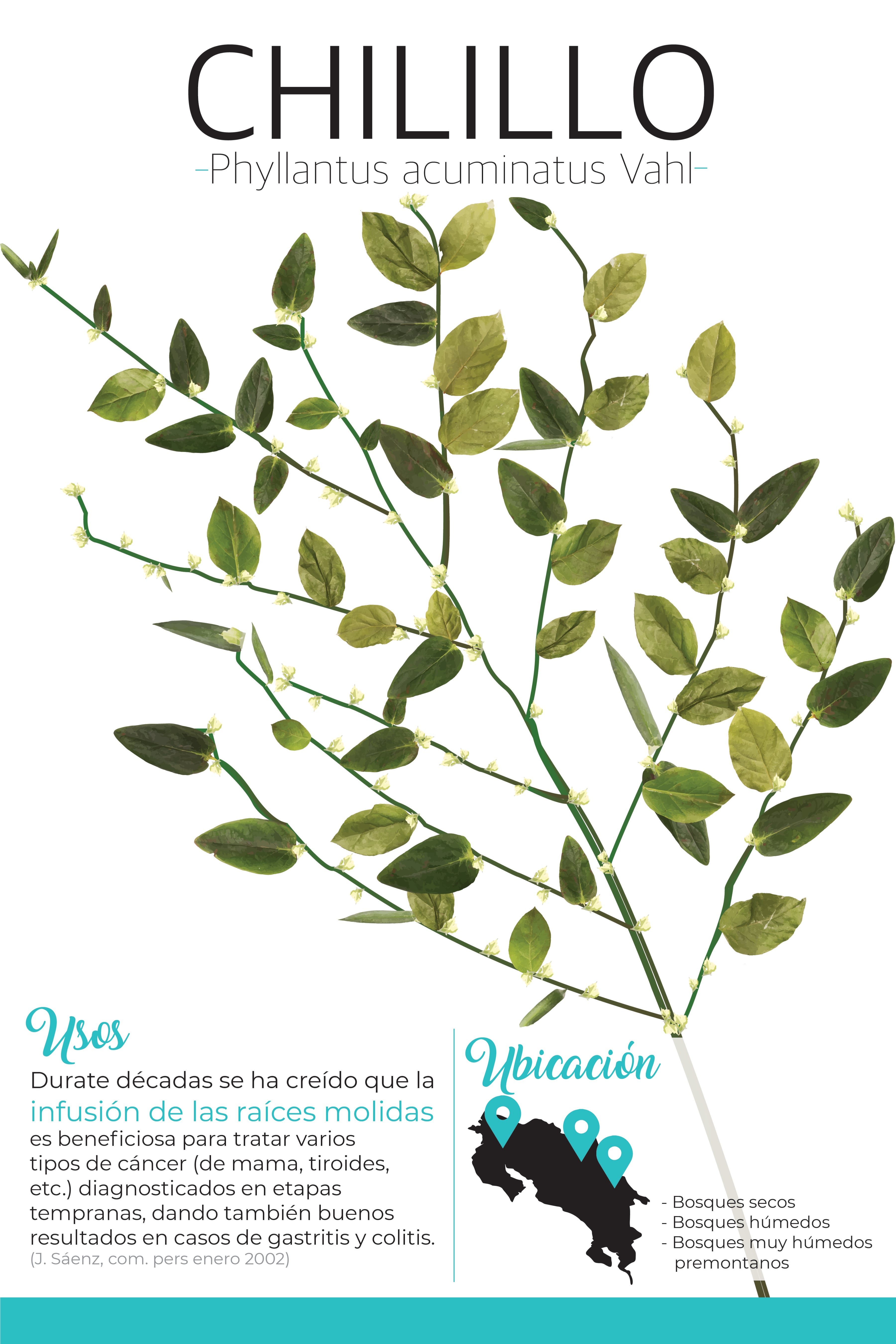 ¿Ha escuchado hablar del chilillo, una planta medicinal con supuestas propiedades anticancerígenas? Científicos del Instituto Tecnológico de Costa Rica (ITCR), en colaboración con la empresa privada, pasaron del mito a la realidad y comprobaron en el laboratorio el potencial curativo de esta especie (Phyllantus acuminatus), labor que les permitirá trabajar en un producto para combatir el cáncer de mama.