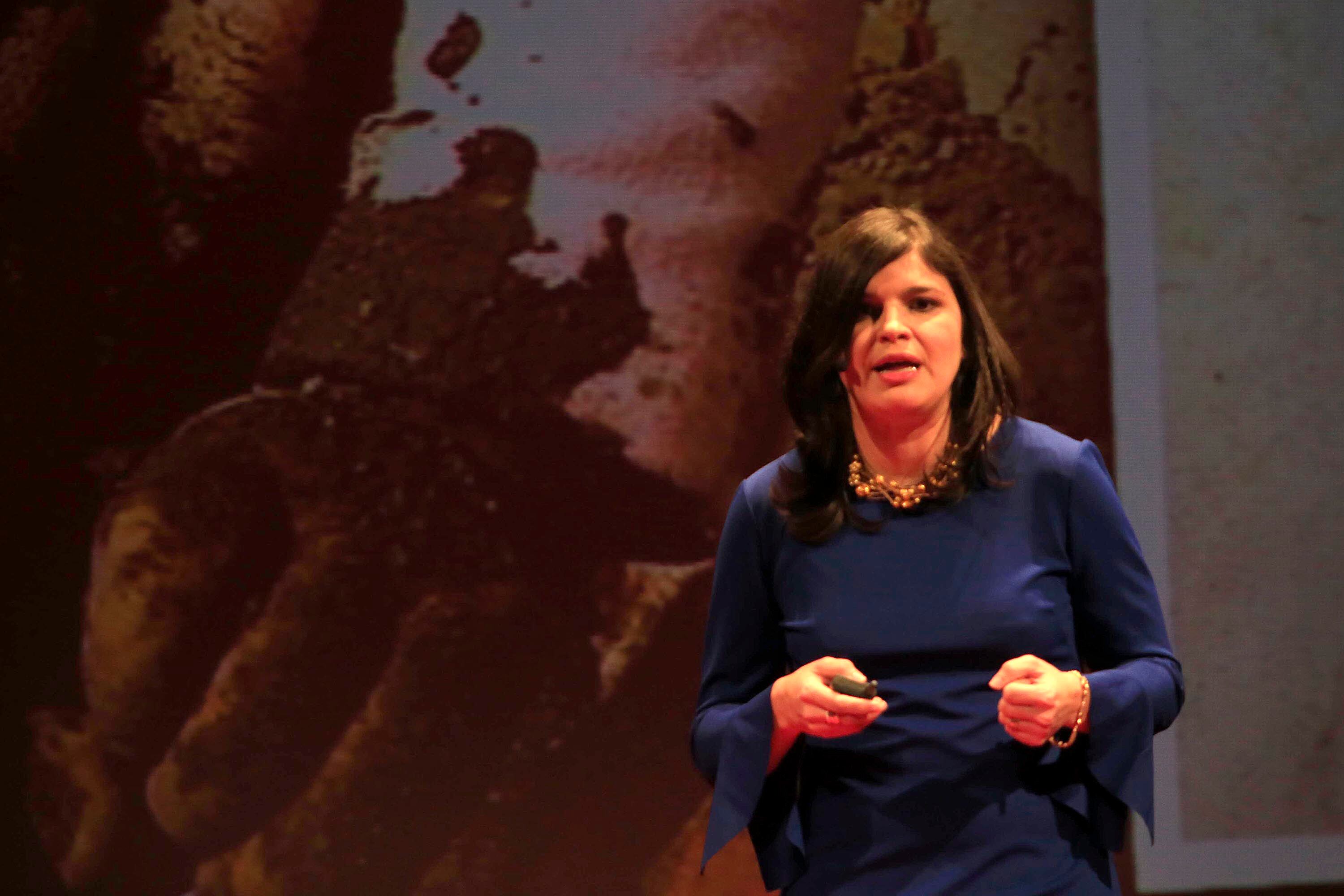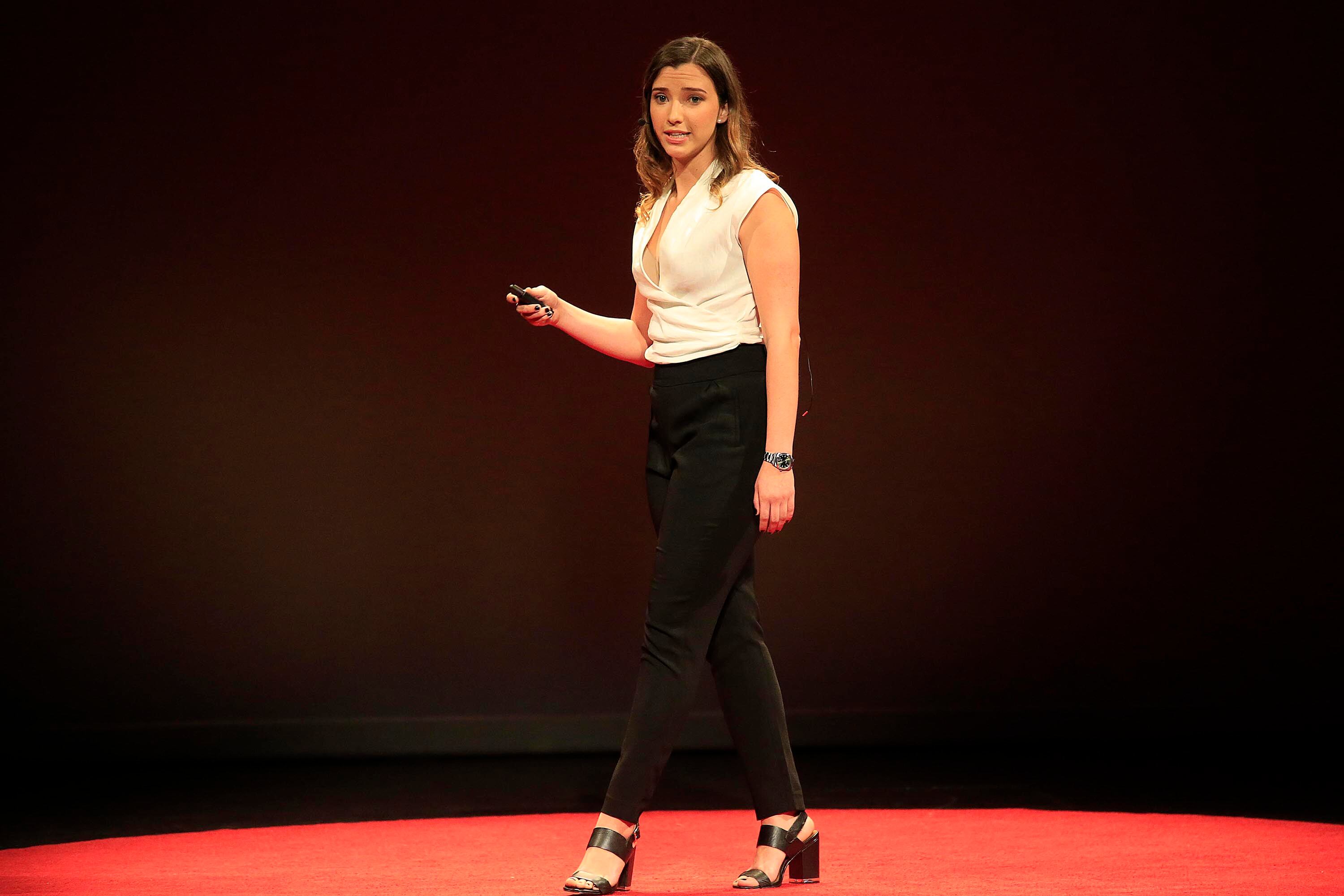 Luego de una pausa musical, la arquitecta puertorriqueña Beatriz de Paz habló de cómo crea sus diseños de edificios a partir de imaginar historias o cuentos y contó que en su tesis de licenciatura combinó una funeraria en un primer piso, con una barra de bar en el segundo piso, de manera que, en un mismo espacio, pero separados, tenía aspectos de duelo y de celebración.