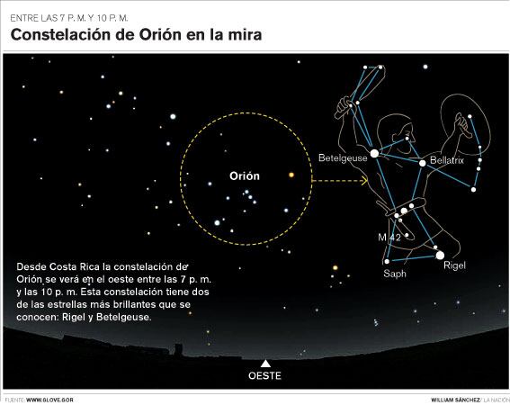 Una vez que se tiene la ubicación exacta cada curioso debe buscar en el cielo la constelación de Orión. En el caso de Costa Rica hay que buscar al oeste entre 7 p. m. y 10 p. m. El sitio www.globe.gov/GaN/observe_finder.html sugiere dónde buscar Orión según las coordenadas de cada país.