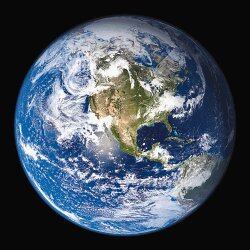 Esta lámina muestra una fotografía hecha en 1972 por la nave espacial Apolo, de la NASA. También ofrece la información científica más actualizada que se conoce sobre la Tierra.
