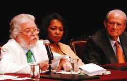De esa forma comenzó su disertación el escritor mexicano Fernando del Paso, quien reunió el lunes a un pequeño pero atento público en el Teatro Nacional.