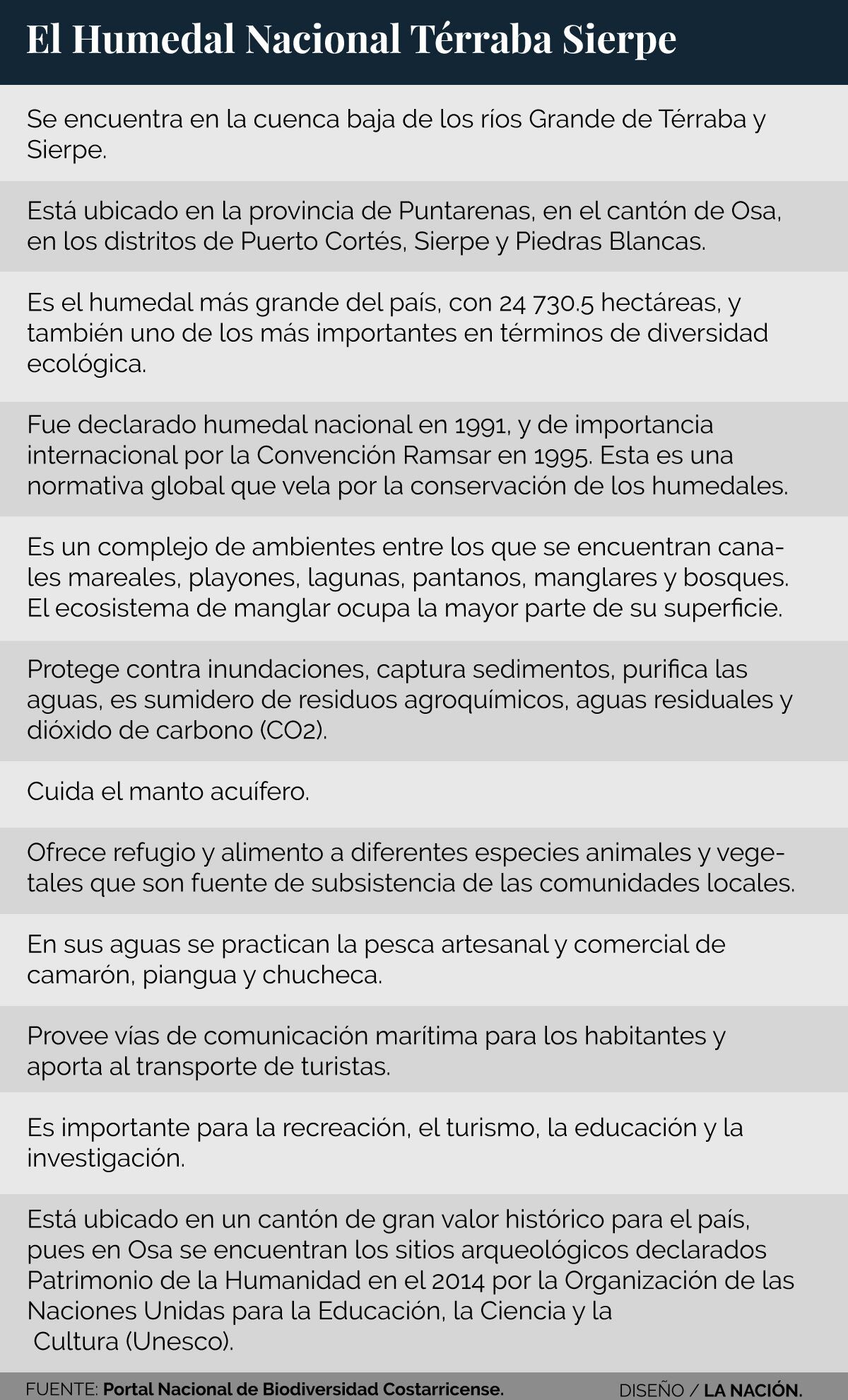 Por su parte, Carlos Martín Zamora, director ejecutivo de la Cámara Nacional de Productores de Palma (Canapalma), dijo que, por el momento, no saben cuántos de los productores asociados a su representada cuentan con fincas agrícolas dentro del humedal Térraba Sierpe o en sectores aledaños a este.