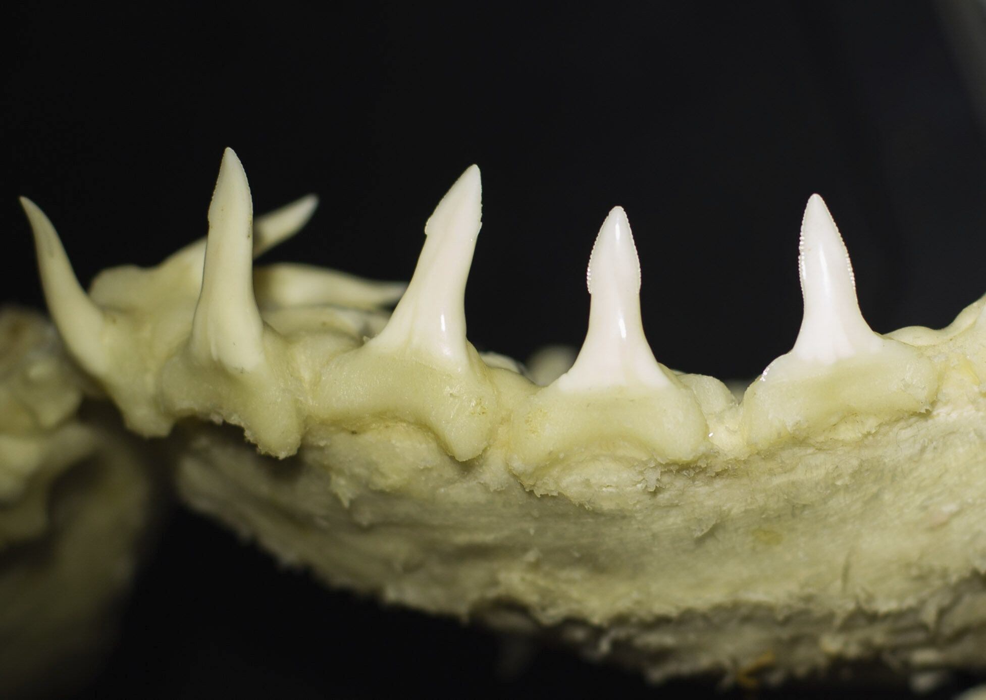El tiburón lanza, confundido a veces con el tiburón toro por su coloración y por merodear los sistemas fluviales, tiene dos aletas dorsales y uno de sus dientes inferiores sobresale como una lanza, lo que le dio su nombre.