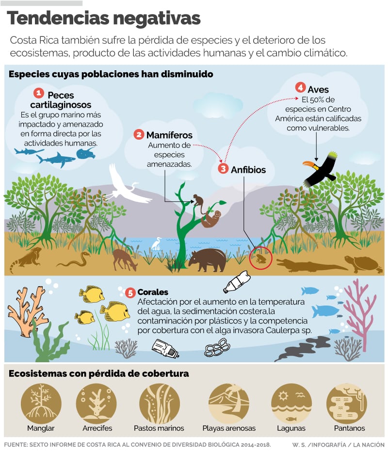 La anterior situación se refleja en la disminución que ha sufrido el país en los últimos años, de las poblaciones de mamíferos, aves, anfibios, corales y peces cartilaginosos, como los tiburones.