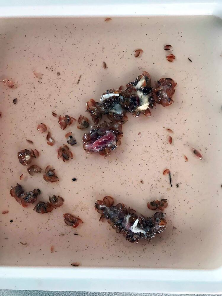 “Recogí una extrañas criaturas del mismo lugar, metiéndome en el agua y atrapándolas con una red”, agregó el señor, que las describió como de color arena. “Agarramos miles de estos pequeños bichos y se los enviamos a expertos”.