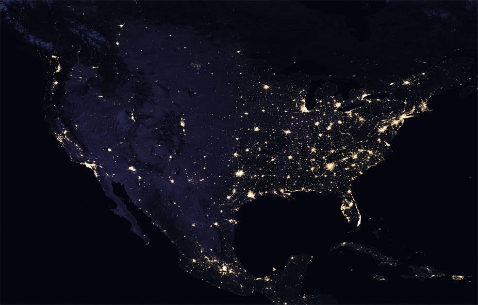 El estudio, publicado en la revista Science Advances, se basa en datos satelitales que muestran que la noche de la Tierra se está haciendo más brillante, y las áreas exteriores iluminadas artificialmente crecieron a un ritmo del 2,2% anual entre 2012 y 2016.