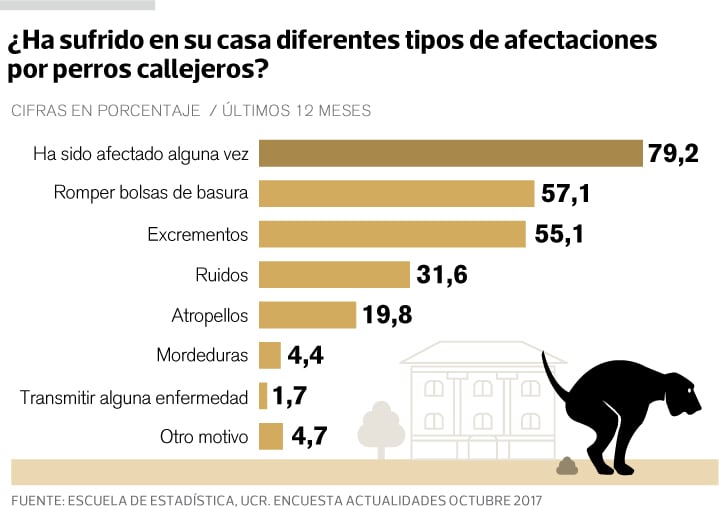 Así lo reveló la Encuesta Actualidades 2017 de la Universidad de Costa Rica (UCR), que indicó que el 52,3% de los ticos considera que estos animales afectan en “algo” o “mucho” la vida de los habitantes.