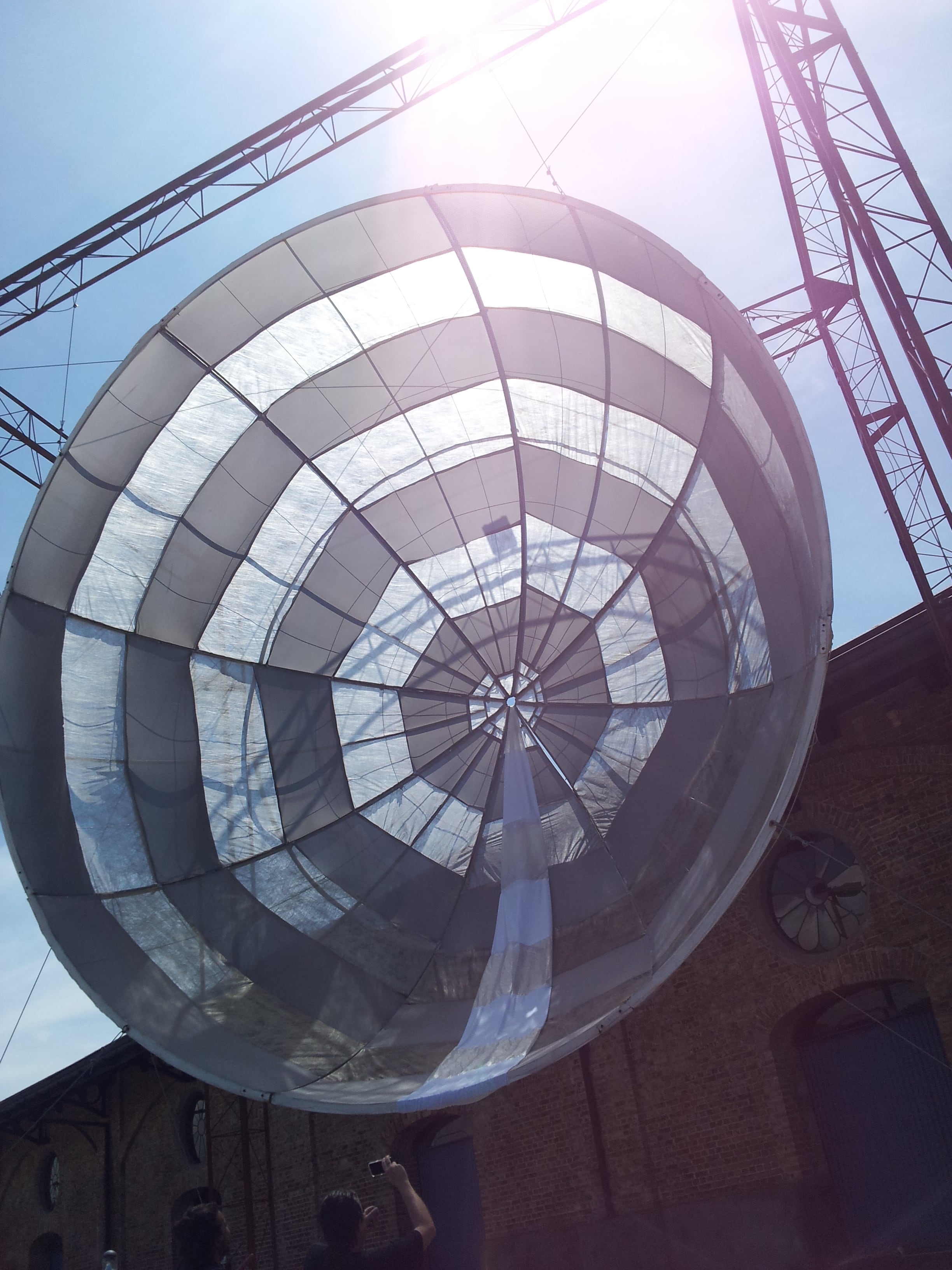 Para realizar los análisis se colocó un medidor de contaminación de aire en la parte inferior de la escultura y se extrajeron muestras de la tela con que fue fabricada.