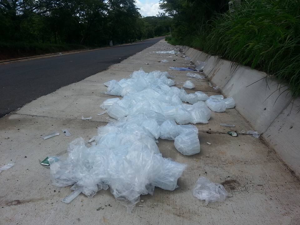 López dijo que el agua fue traída desde San José y, según afirmó a las 9:40 a.m. todo eso ya está recolectado. "El agua no se puede utilizar porque luego de algunos días ya no es potable y hay que romperlas y desecharlas", explicó.