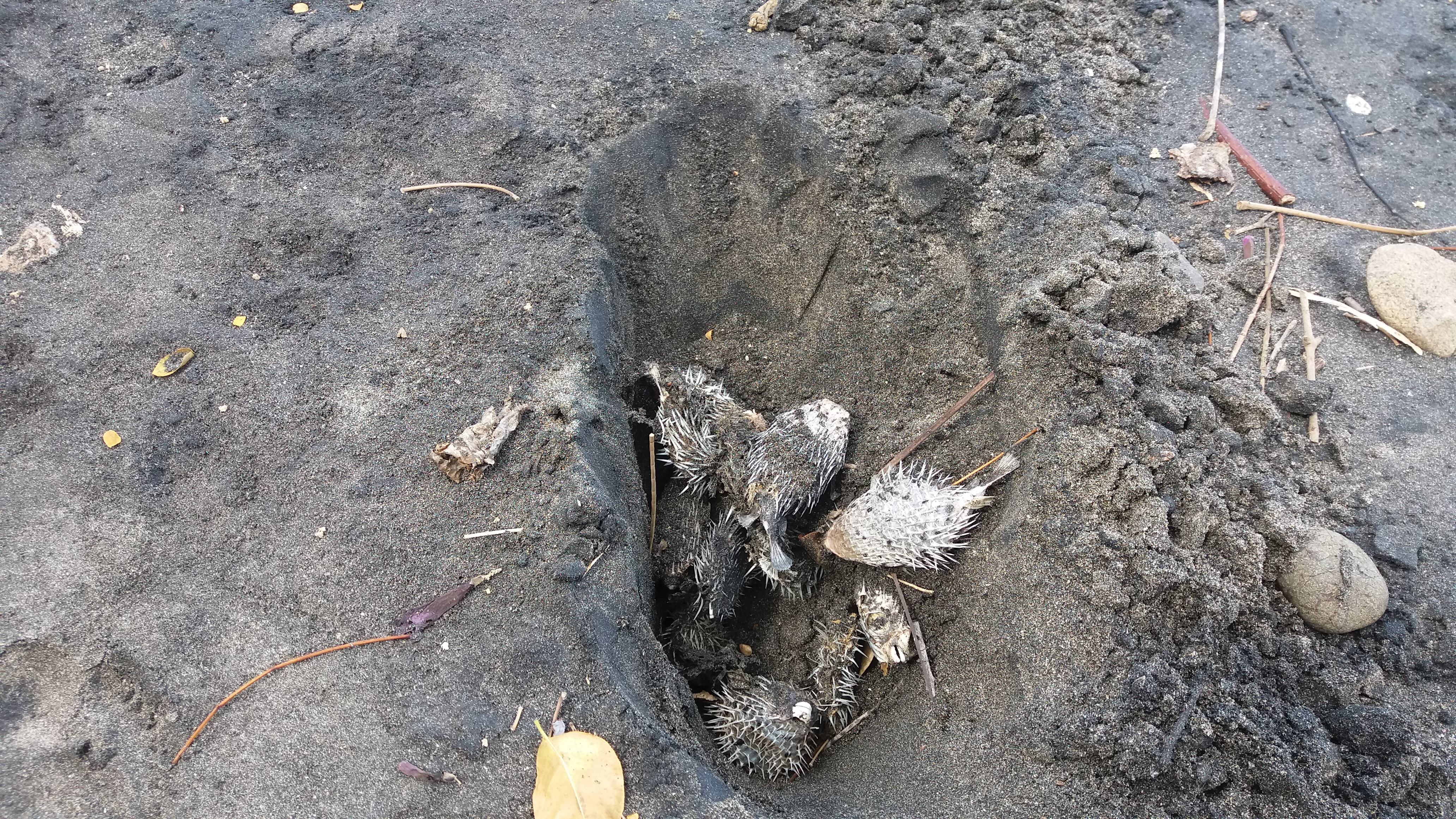 "Hay decenas de peces globo muertos en las playas de bahía Culebra. El martes 24 de enero, por ejemplo, había montones en Nacascolo. Los lugareños dicen que el mar se enfrió y por eso murieron", comentó Patricia Leitón, quien vacacionaba en Guanacaste en estos días de principio de año.
