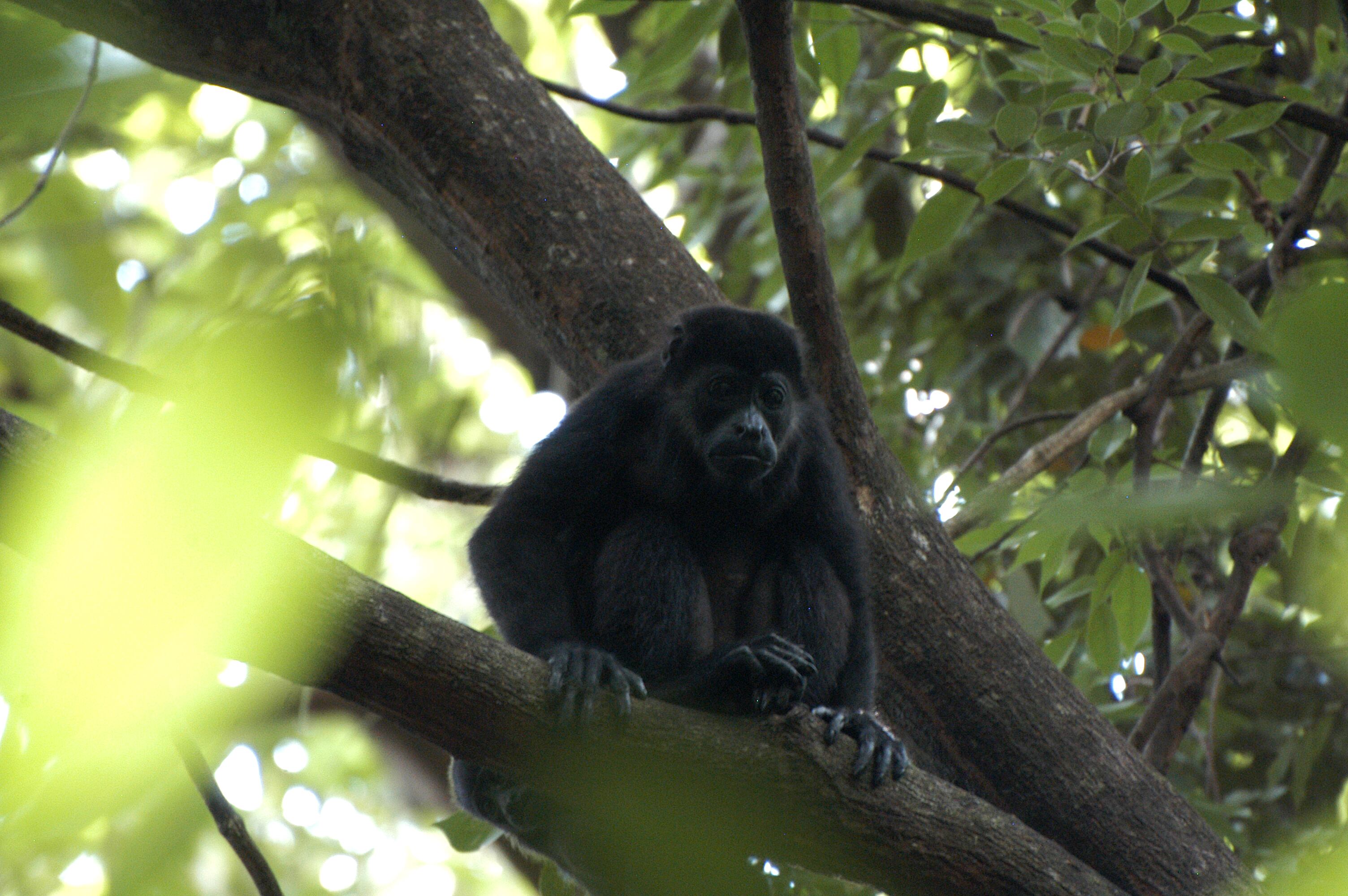 Una de las características que diferencia al mono aullador de manto (alouatta palliata) o congo, del resto de los de su especie, es su pelaje café oscuro, casi llegando a negro.