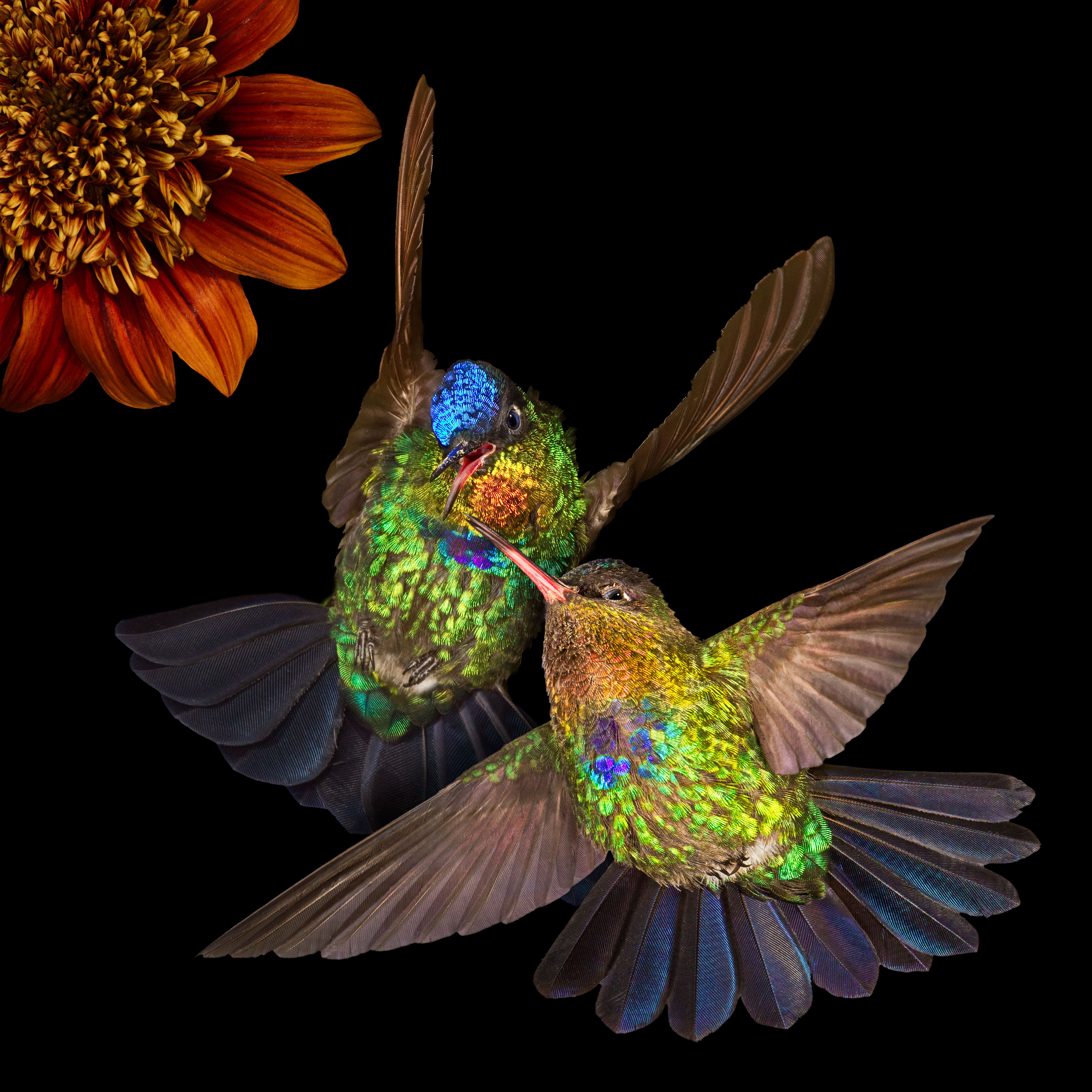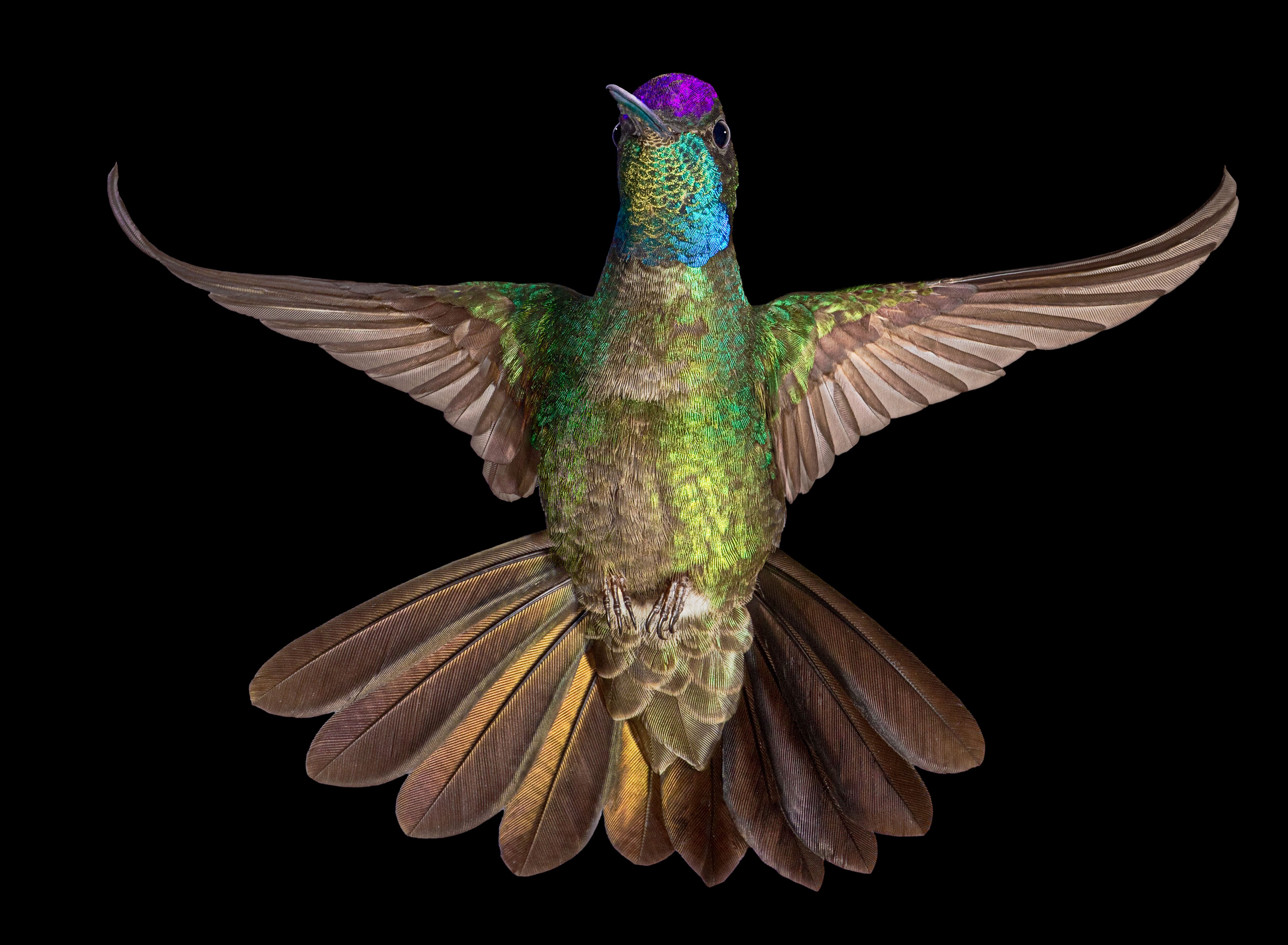 “Para conseguir la foto apropiada de cada colibrí, es necesario disparar unas 2.000 veces la cámara. Fotografiamos a la sombra y configuramos el equipo para que tome una imagen completamente negra con la luz ambiental. Luego agregamos hasta 14 luces de muy baja potencia que controlamos a través de un transmisor de radio”, detalló Walpole, al hablar de la técnica empleada.