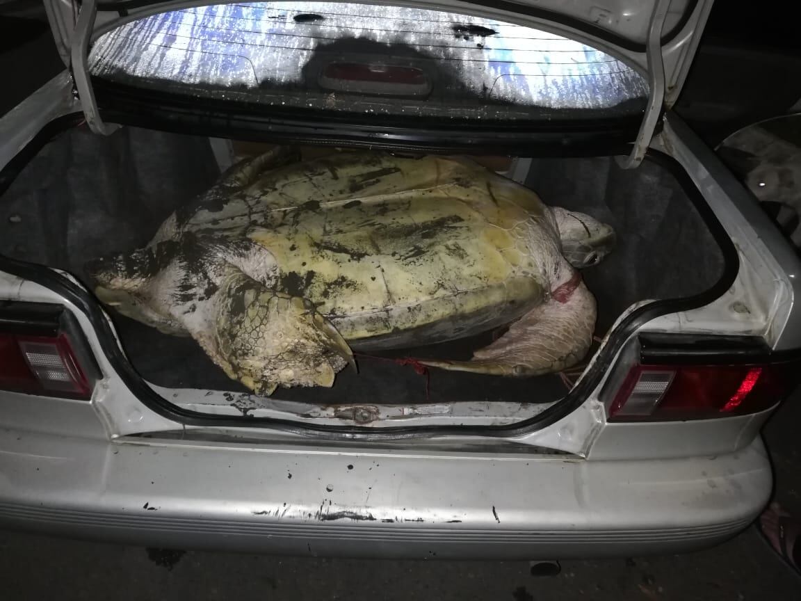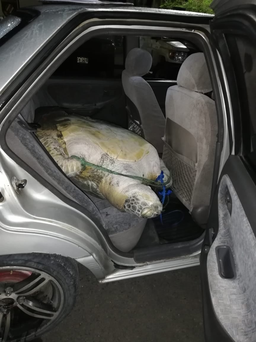 Una vez que los policías inspeccionaron el automóvil, conducido por un sujeto de apellido Membreño, se descubrió una de las tortugas dentro de la cajuela y la otra en los asientos traseros del carro; ambas se encontraban con vida.