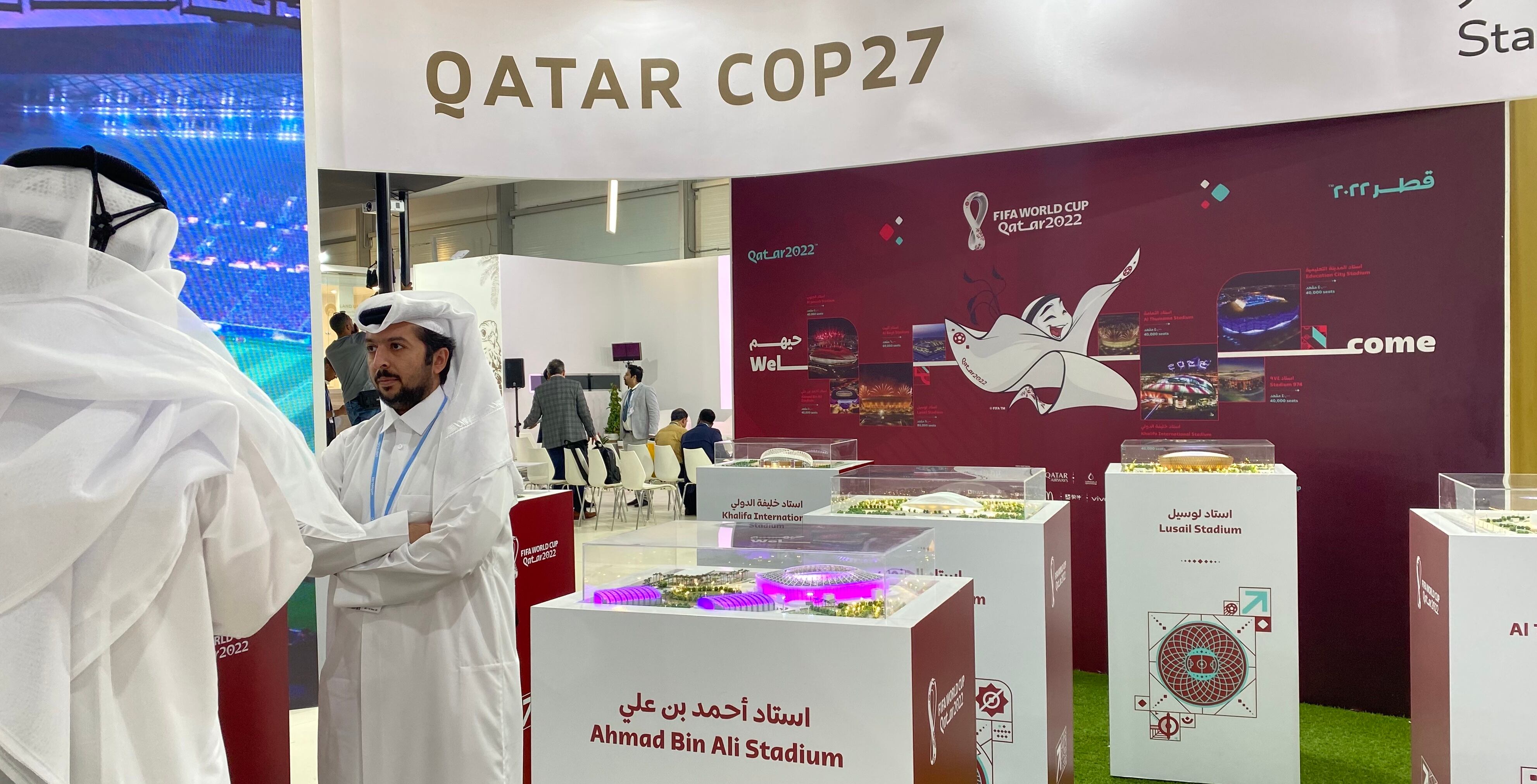 Sharm el-Sheij, Egipto. El Mundial Qatar 2022 que arranca este mes tiene una visible presencia en el pabellón catarí de la Conferencia de Naciones Unidas sobre el Cambio Climático (COP27). Qatar no escatimó en gastos para publicitar su torneo en esta cumbre climática donde, sin embargo, sus delegados esquivan preguntas ligadas a críticas al evento por razones ambientales y humanitarias.