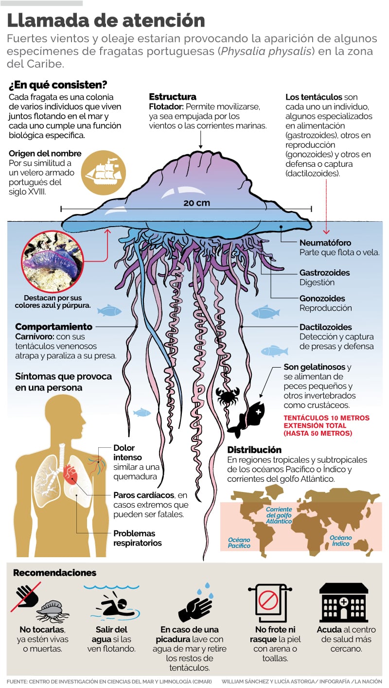“Nos preocupó mucho, primero porque no sabíamos de su presencia (de las fragatas portuguesas) en el país. Este tipo de ‘aguamala' es más frecuente en el Pacífico, en aguas cálidas y no sabíamos que estaban presentes en el Caribe”, dijo Vicente.